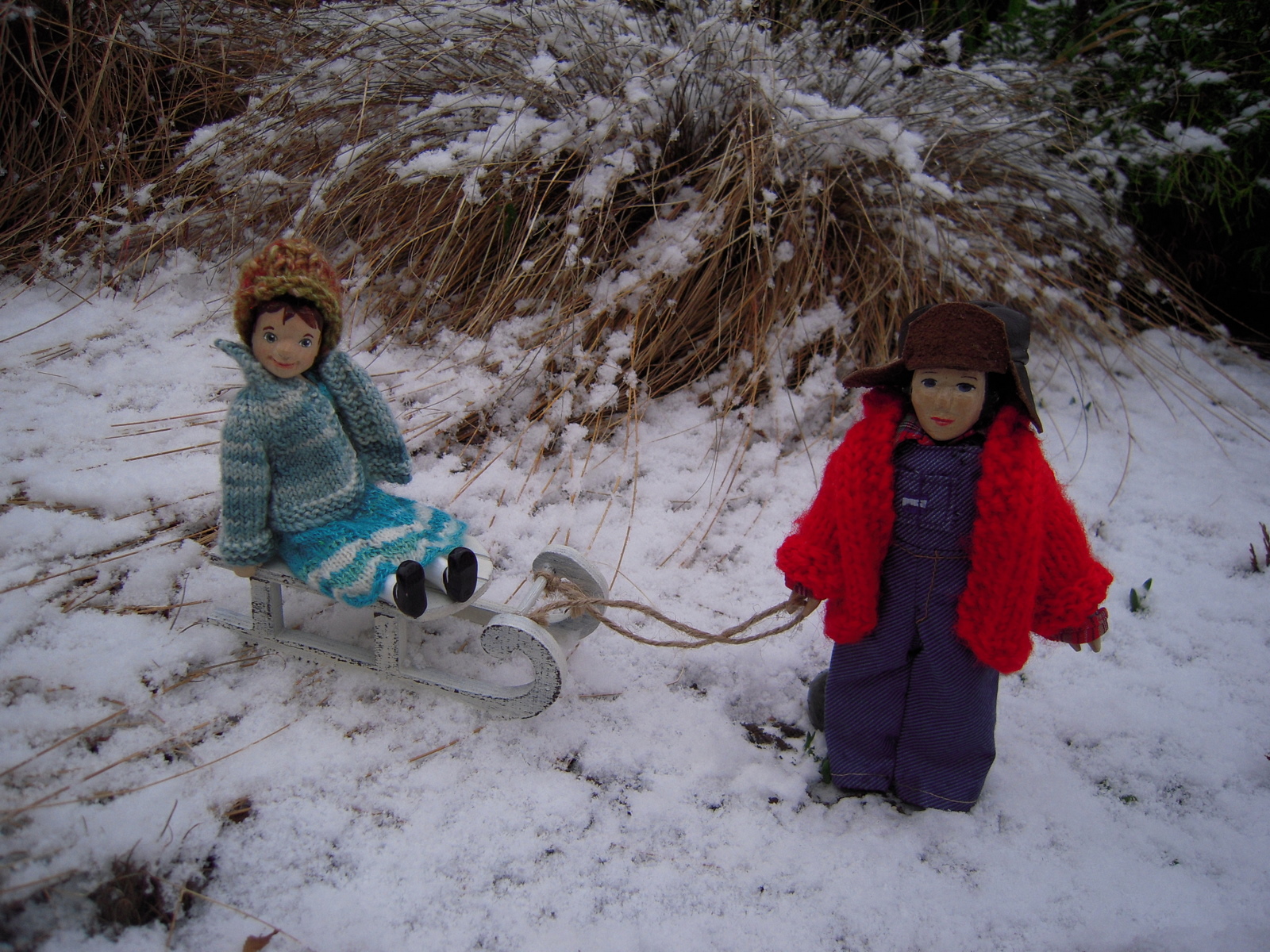 Min is lured away from puzzle-making by an unexpected dusting of snow. The Quimper Hittys don’t have a lot of cold weather clothes – the winters around here are usually wet, not freezing…