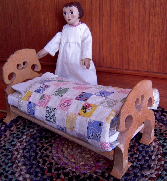 The pinweel quilt is made from scraps of Constance’s dresses.