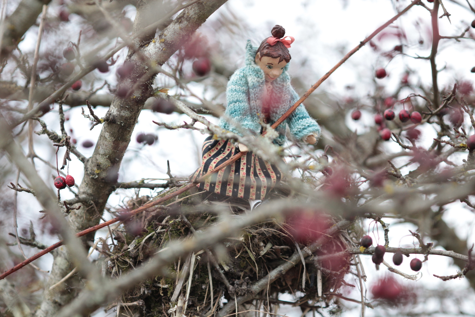Min consults Þóra about how to find bird’s nests. She is particularly interested in finding a sock-like nest of Psaltriparous minimus so she can get to know her namesake birds. Þóra says that with the lack of foliage on the trees, this is the perfect time of year to see nests. Unfortunately, except for her woodshed haven for lost little birds, winter nests are unoccupied. She advises Min to go climb some trees.