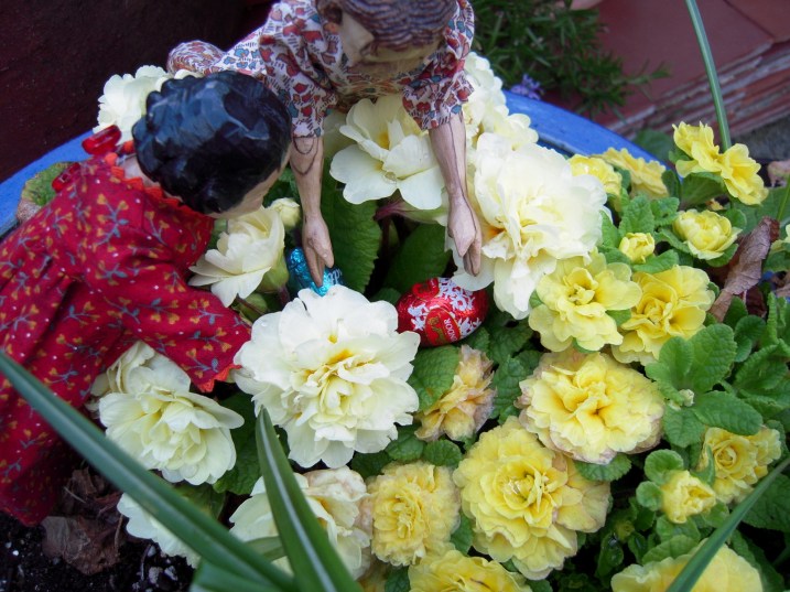 Tags: Azalea, doll, Flowering Currant, Heather, Hibernaculum, Plum Blossoms, Primula, Quimper Hitty, Quimperhitty, Rhubarb, Strawberries