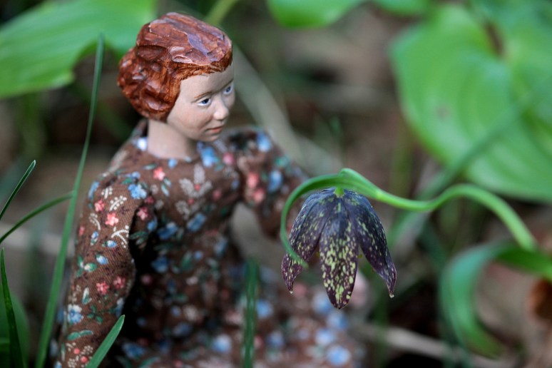 Carya and the lily seem a perfect match in their chocolate colored frocks.