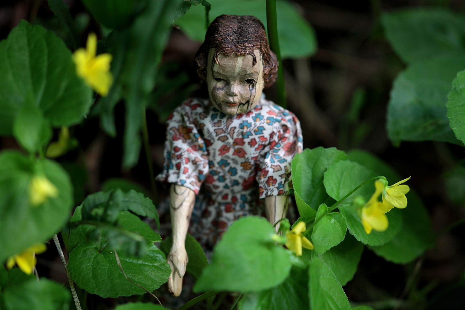 Viola sp (possibly glabella) surrounding little Eugenia.  She feels like a wood fairy!