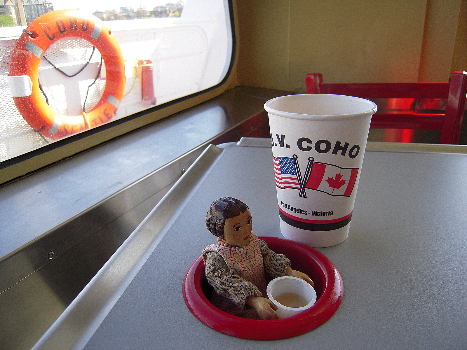 The Coho Ferry is underway! Constance shared my cup of tea, with just a splash of milk.