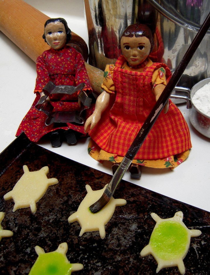 Constance and Tansy are inspired to make Painted Turtle cookies for their Quimper Hitty Sisters..