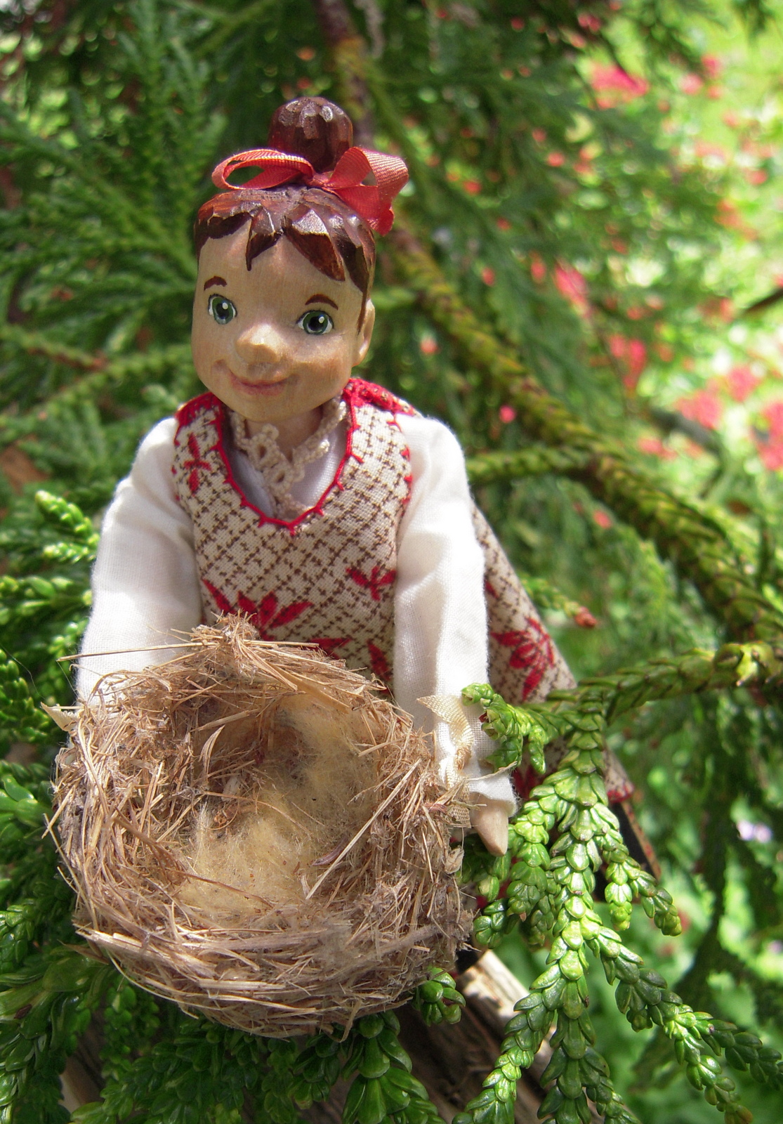 Besides being named after a little bird (or perhaps because of it) Min is fascinated with birds. While we were visiting Friday Harbor she did quite a bit of birdwatching. An endless stream of Rufous Hummingbirds made endless trips to the feeder at the cabin…. and being a fearless sort of doll, she determined to try and get as close to them as possible.
