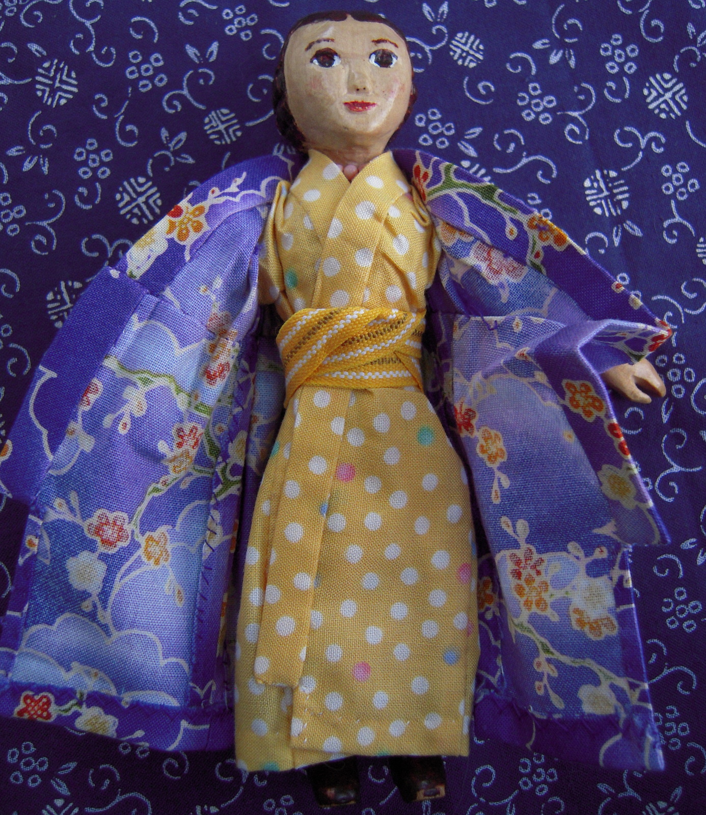 First on after the undergarment is the Kimono – it has a big tuck in it at the waist area.