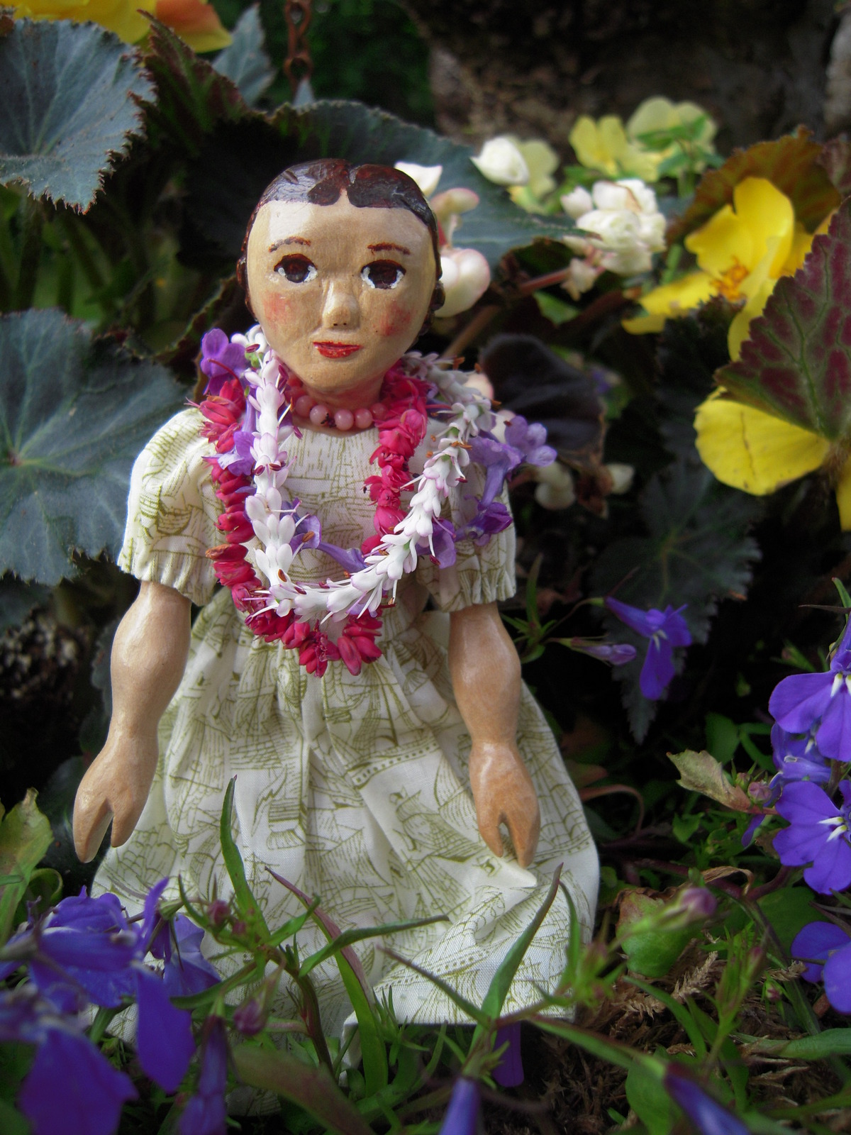 Constance is ready to sail to Hawaii in her pretty dress. The leis are just the perfect size!