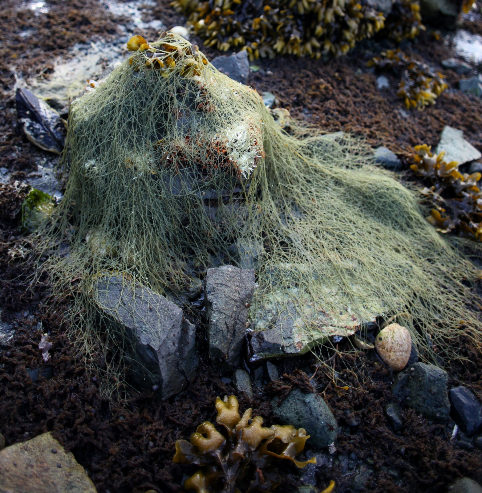 With greeney yellow fronds, these algae make a forest when the tide is in.