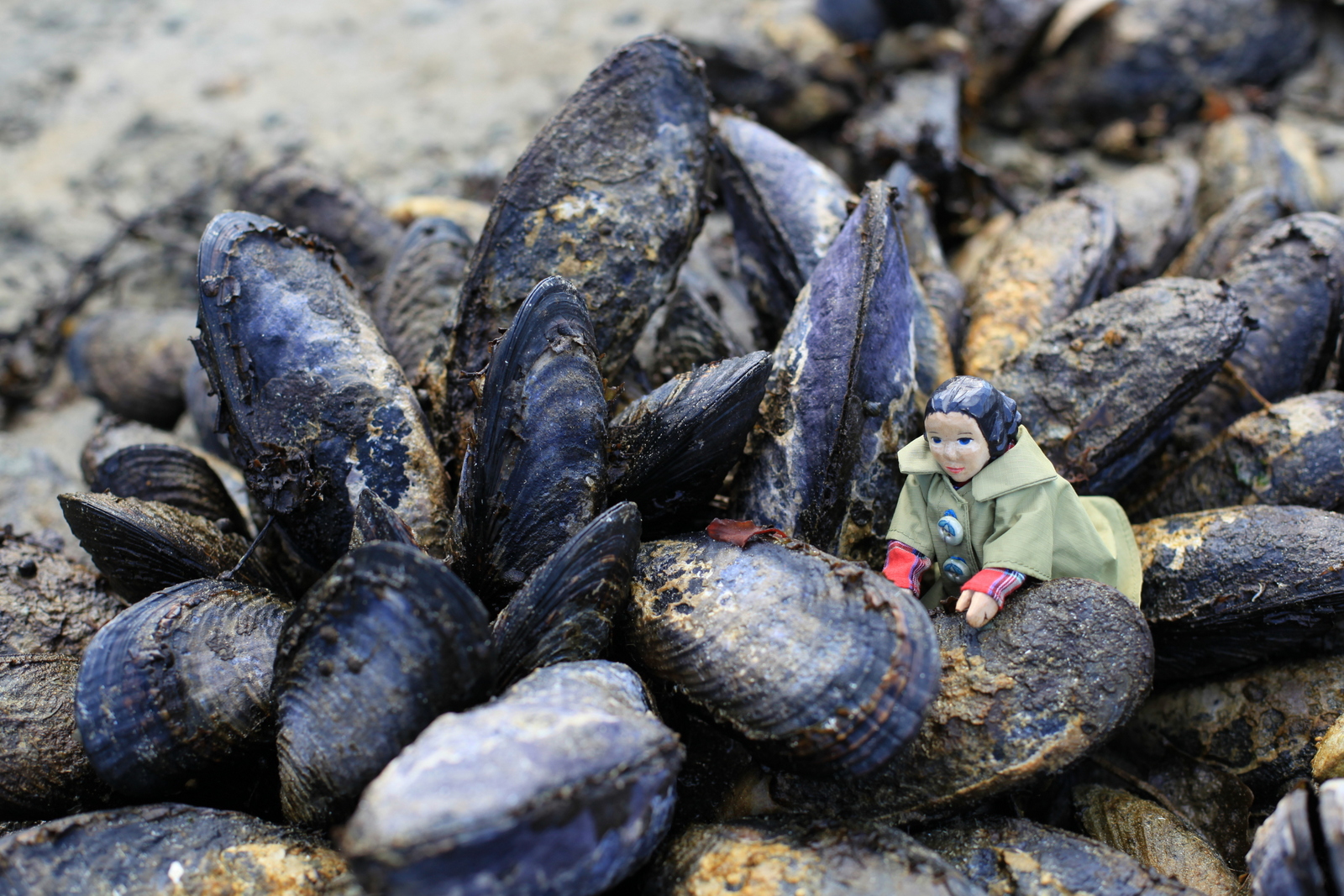 Tansy was Very Impressed with the size of the Mussels, some were bigger than she is! Once she sat in an empty shell and used it as a toboggan!