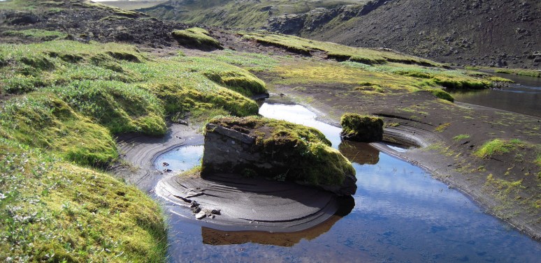 The landscape was constantly changing and always amazing.  The water in the cool streams always tasted delicious. After walking all day we rejoined the Skafta River, and eventually came to the huts at Holaskjol.