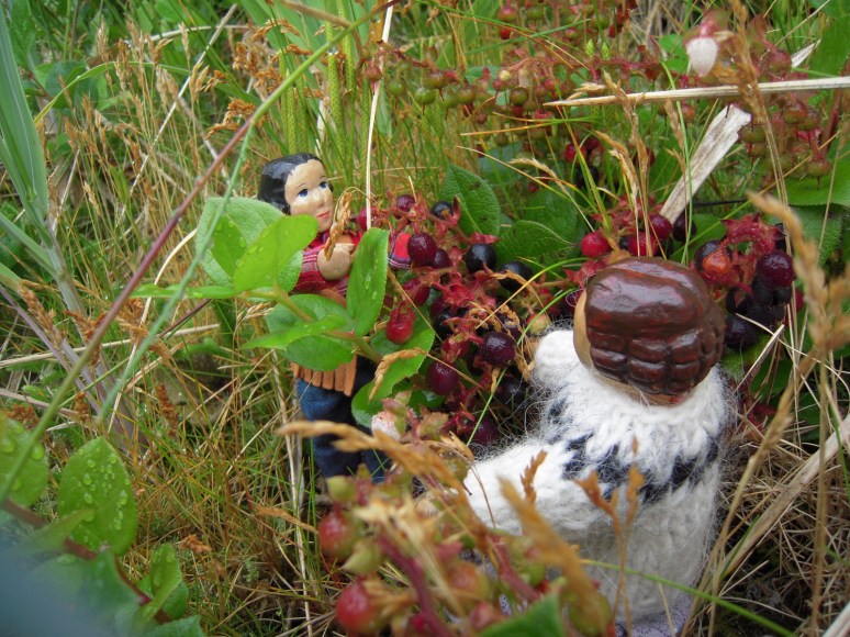 These salal plants are very small, It certainly rains enough, but perhaps they don’t get saturated with enough water on the dunes. The berries were plentiful and delicious! I have never known a Quimper Hitty to pass up an opportunity to pick and eat some fresh berries.