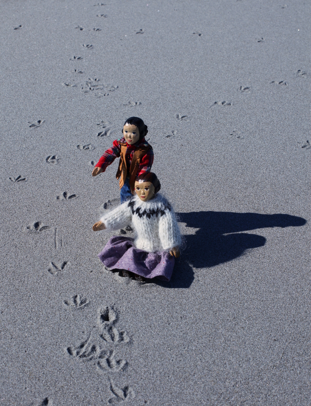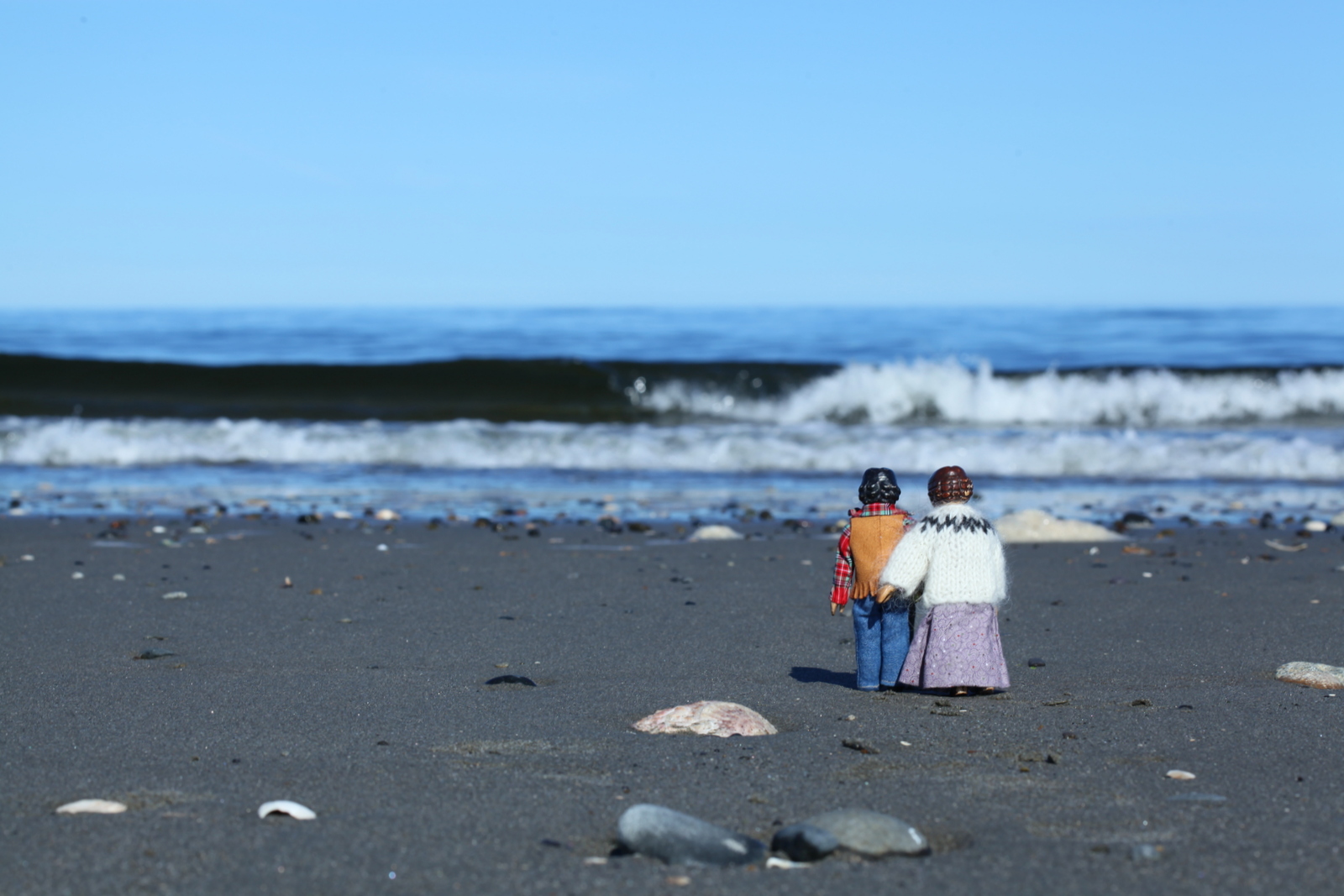 After climbing up and down and over several sand dunes, Tansy and Constance finally arrive at the beach. Wow. You can even see Alaska on a day as clear as this!
