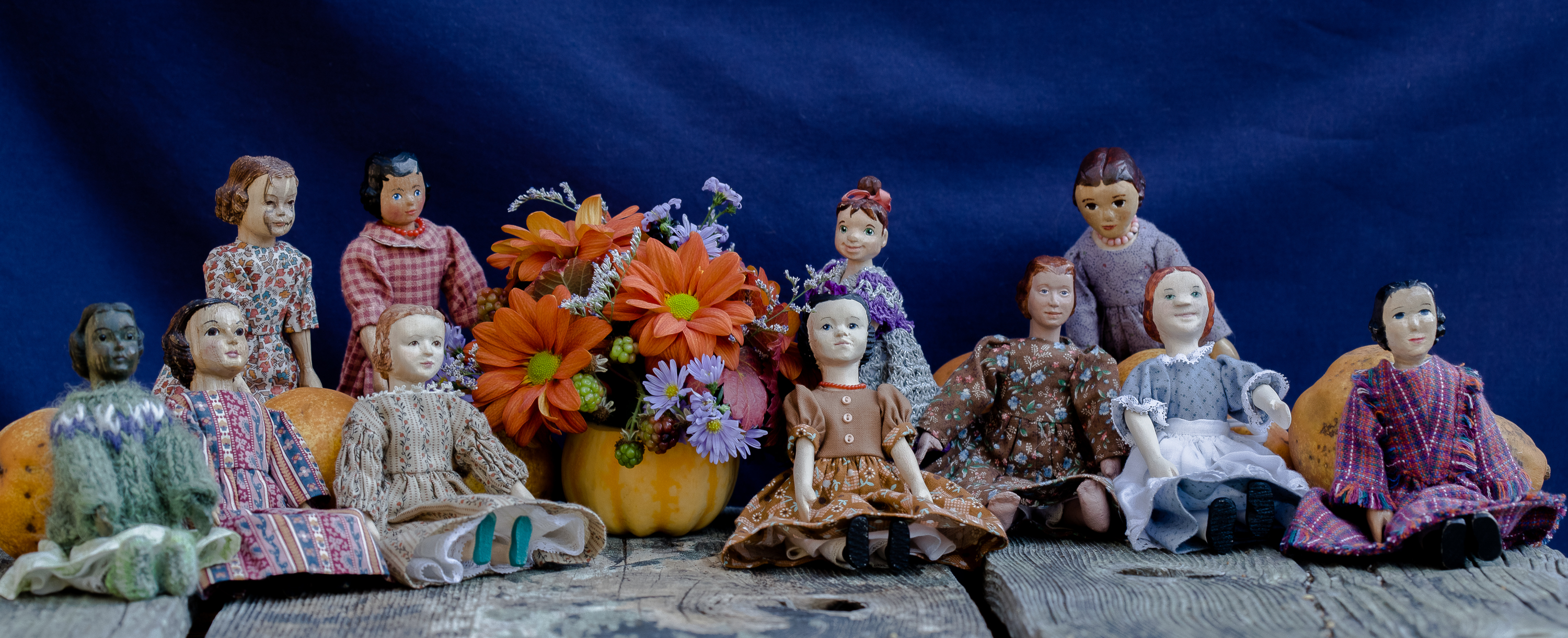 3. What a beautiful picture of all the Quimper Hittys on Thanksgiving Day. Their dresses are beautiful. How nice to get them all together.