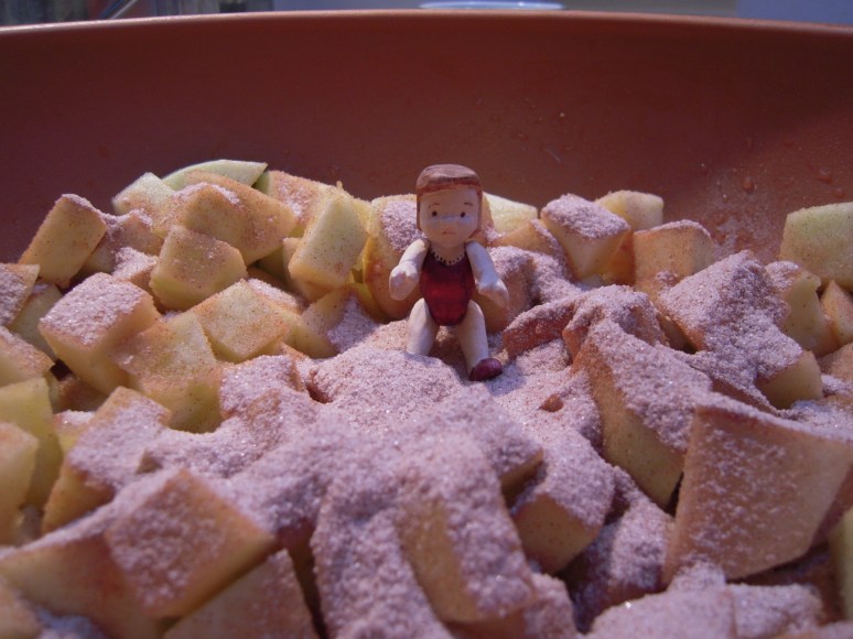 My mouth is watering. I may have to buy some apples to try the recipe. Good thing Toad didn’t get baked into the dessert! And good thing Pip is such a good helper!