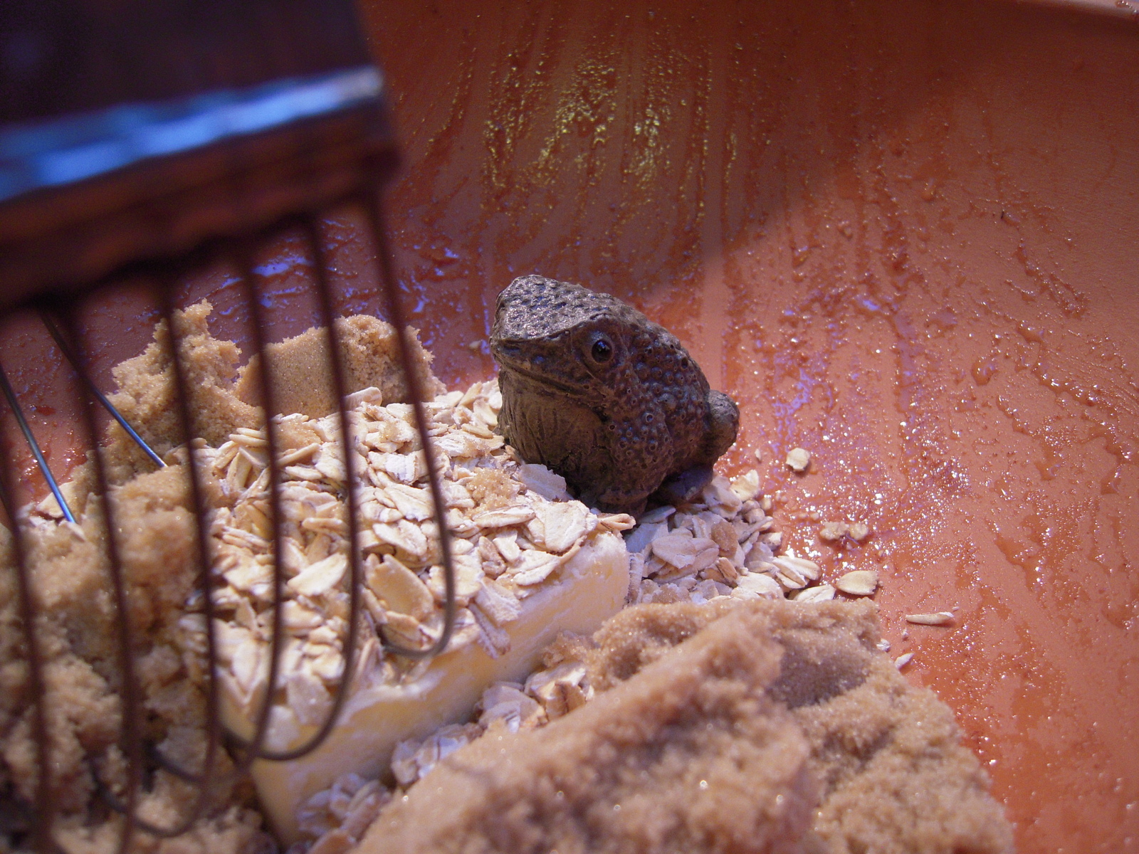 Toad supervises the making of the crumb topping. Fortunately he is good at hopping.