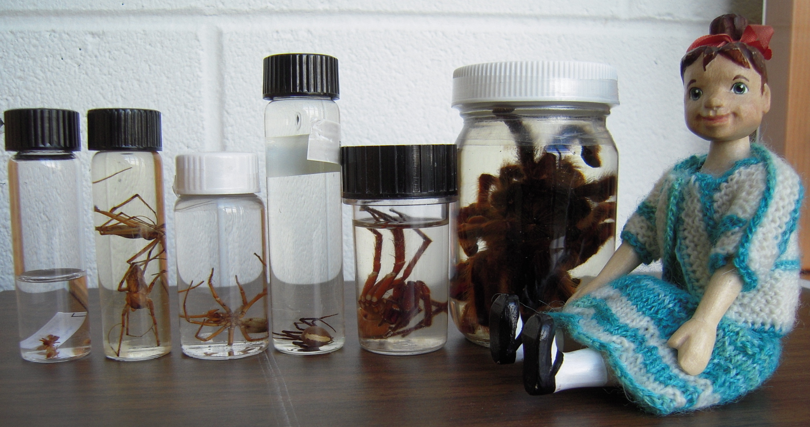 There are over 700 kinds of spiders in British Columbia…some are indigenous, some introduced and naturalized and some exotic.  Min finds some specimens of all kinds and sizes in the Entomology Department at the Museum.