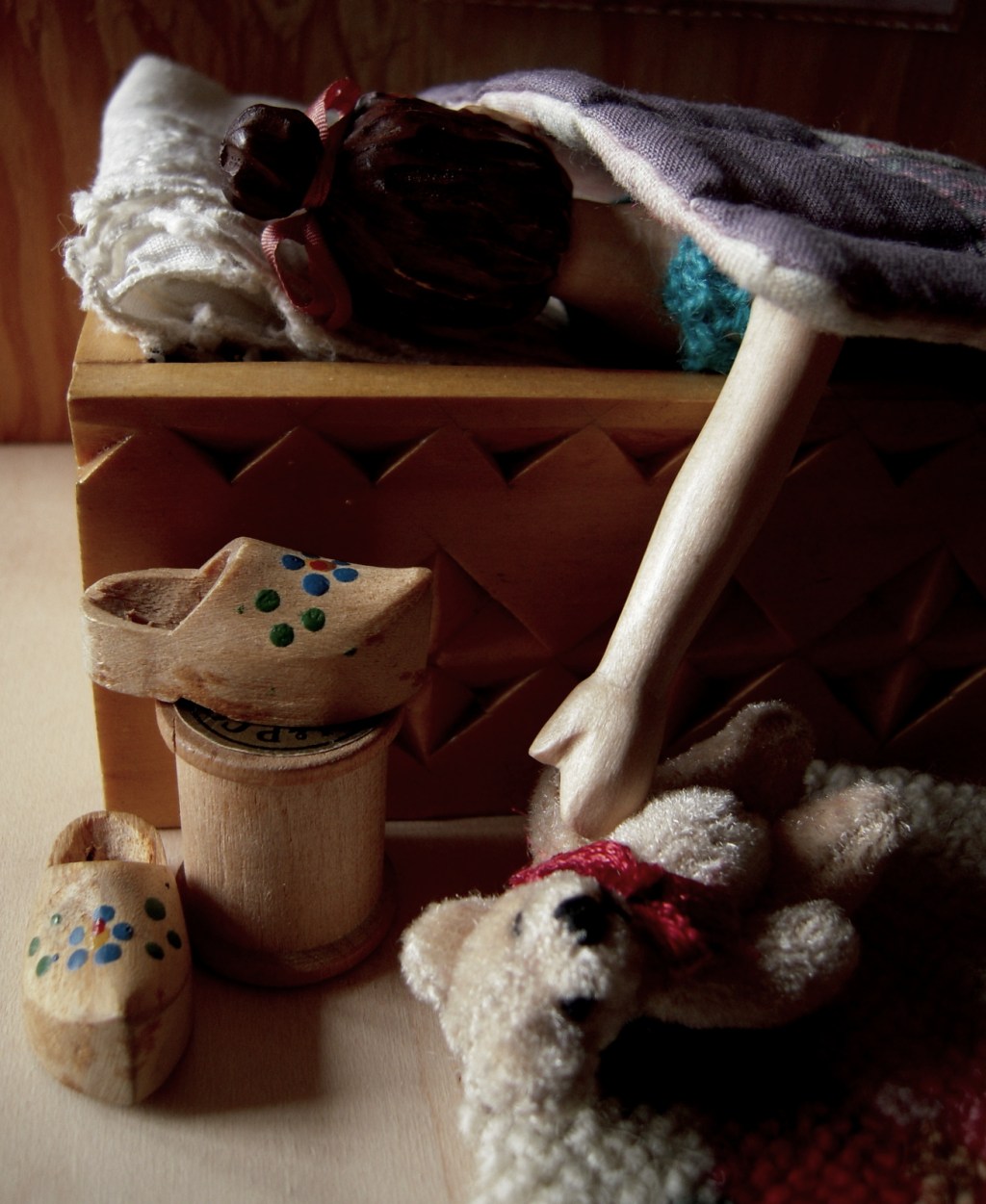 • Min may be short a pair of shoes when she wakes up, but it looks like Stúfur might need them more than she does…He likes the look of these painted clogs, even though they are Swedish…