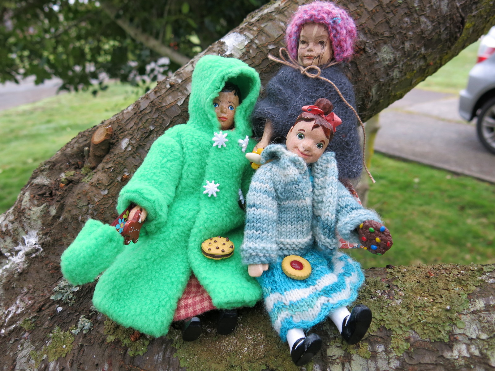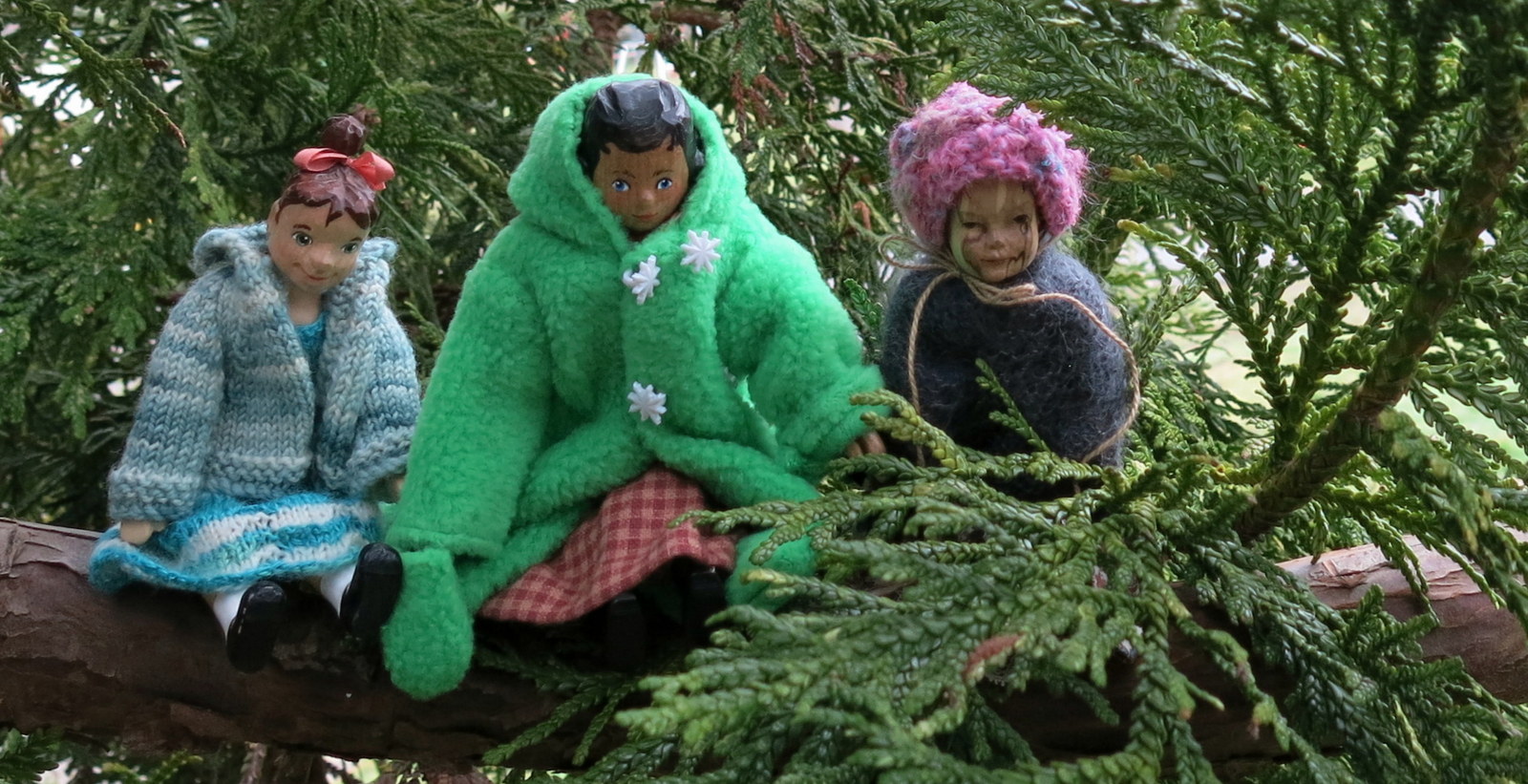 1. Is that a Monkey Puzzle tree? I had one once, but it froze during a cold winter. Good thing the girls are all bundled up to stay warm!