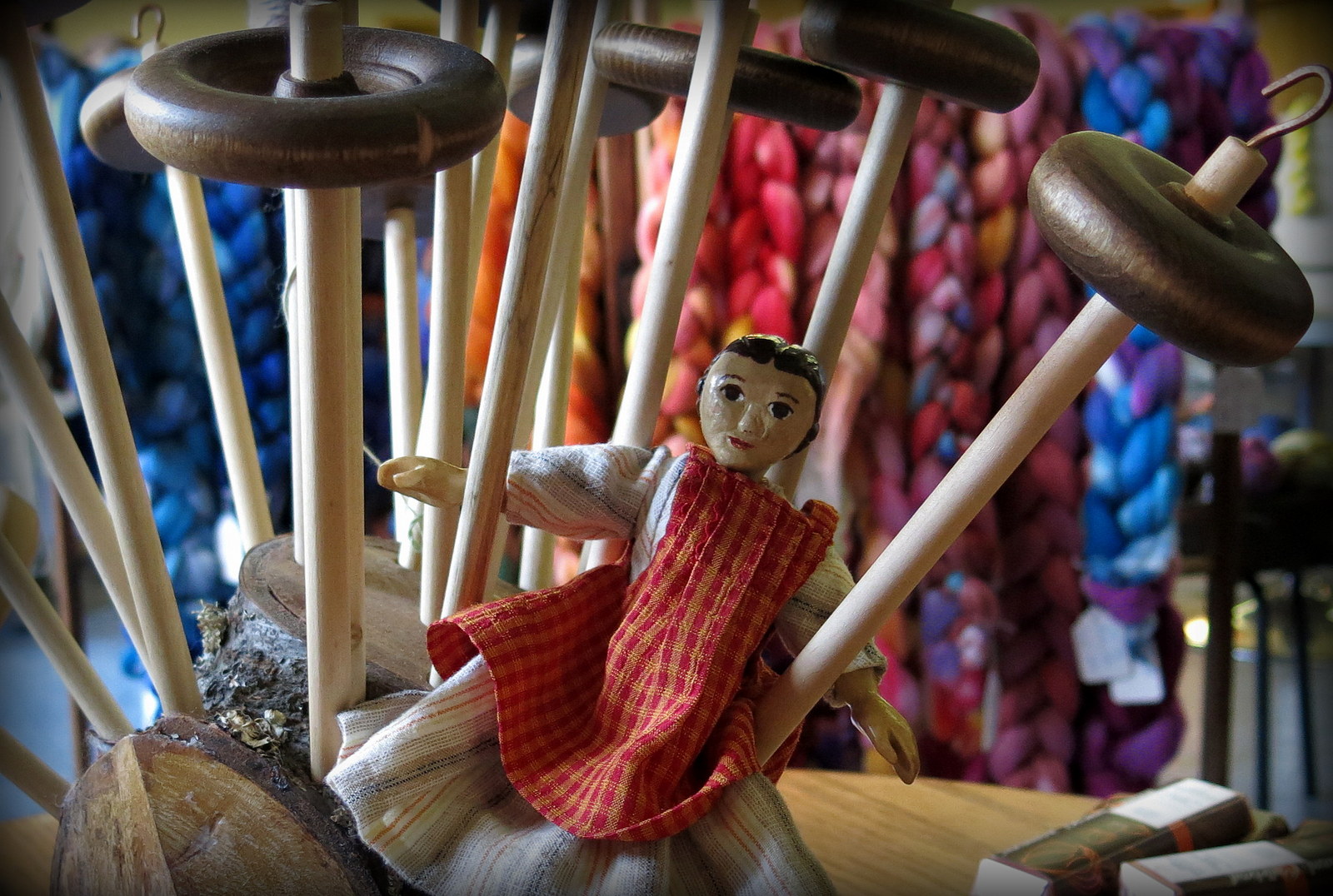 2. This photograph of Constance among the drop spindles is amazing. My hittys and I don’t think we will ever see