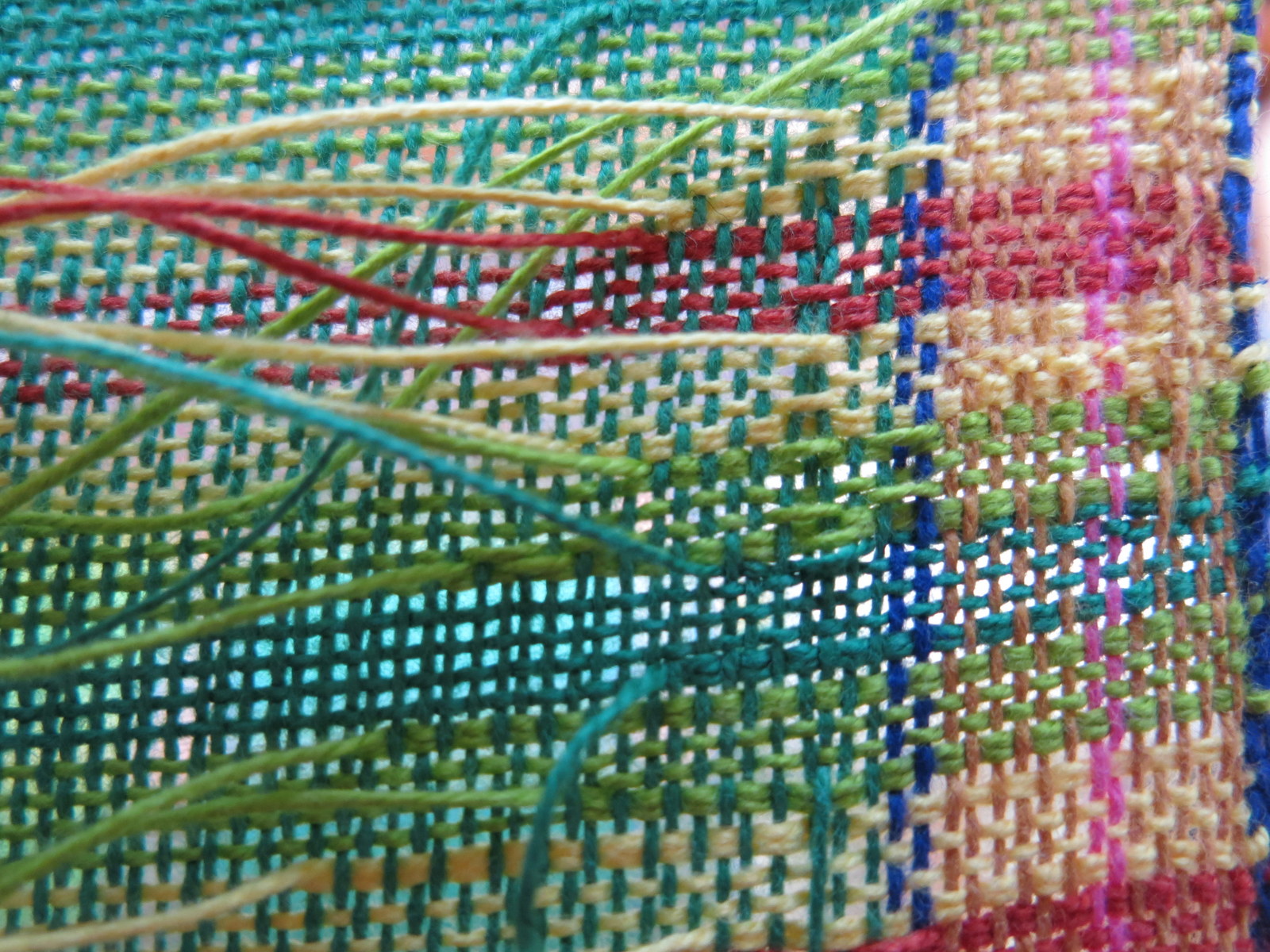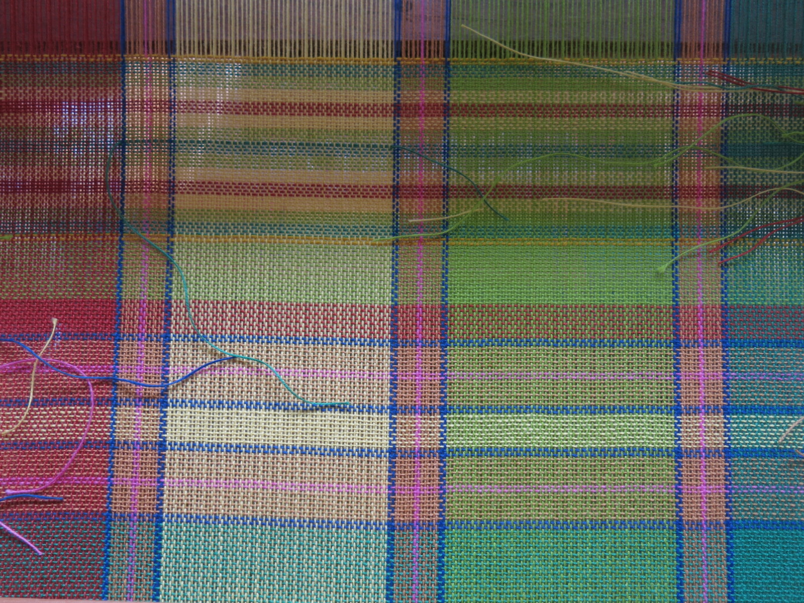 I wove it anyway, using a stick shuttle since the shed was too narrow for even my flattest boat shuttle…The result is an uneven and mistake-prone cloth.