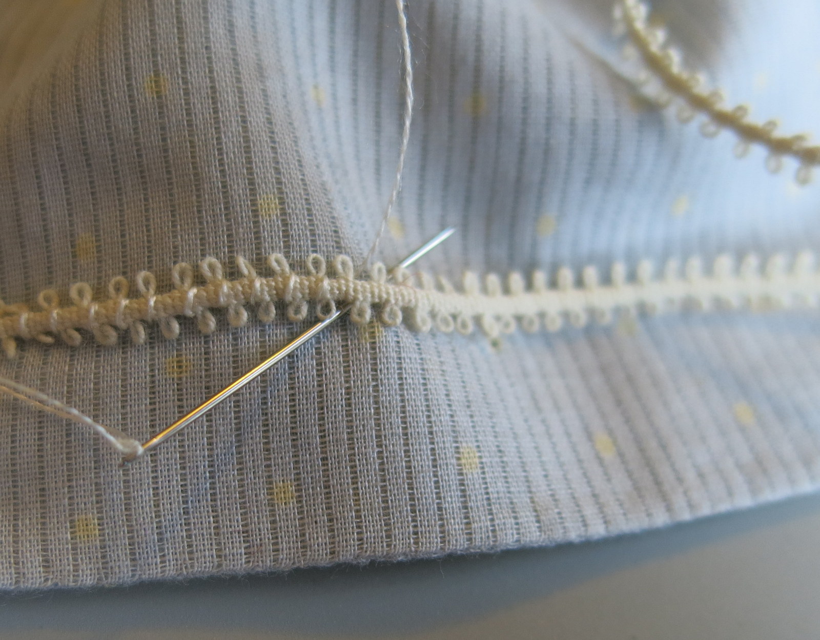 Nice even stitches attach the skirt to the bodice, and then little overcast stitches to keep the seam allowance from fraying away.