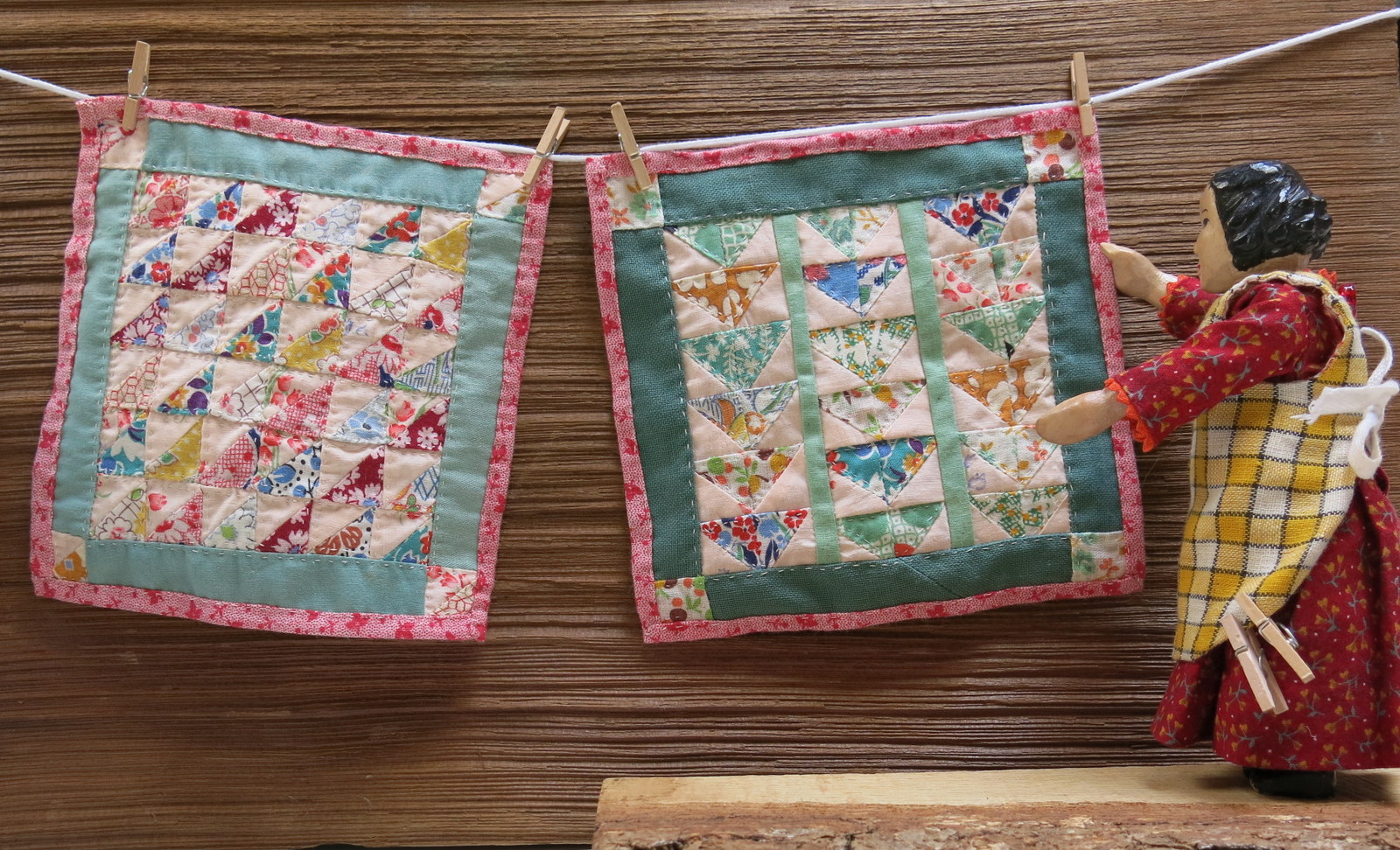 These tiny quilts are very nice – I like it that you’ve reused the old fabrics, which do have lovely colors and patterns.