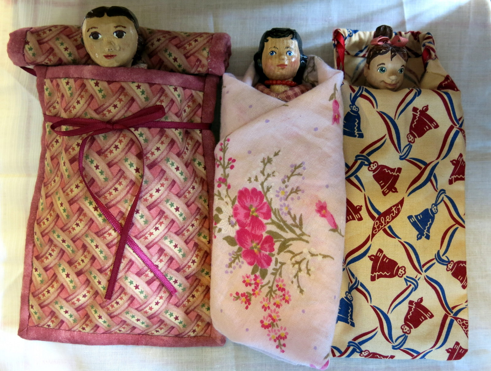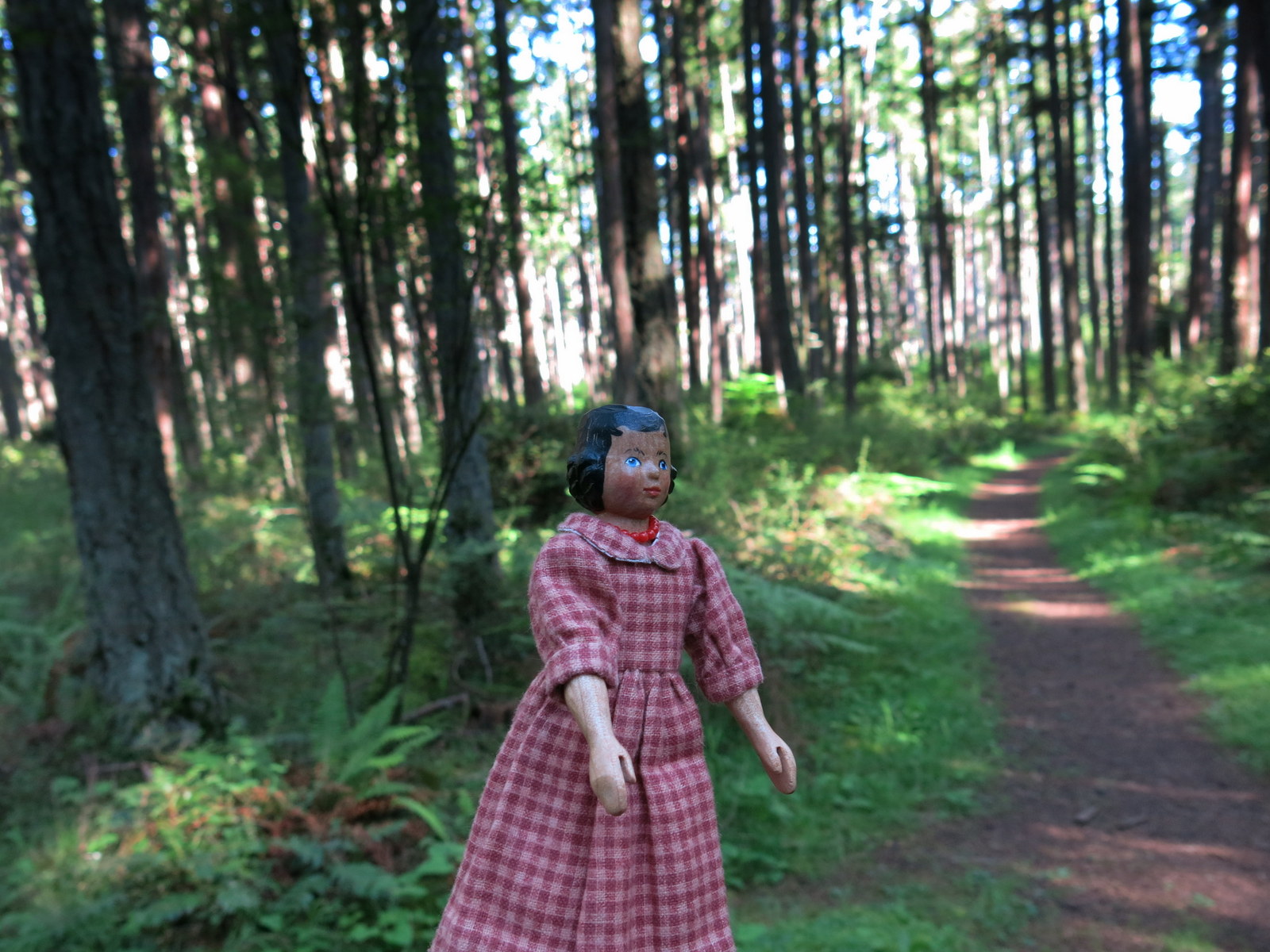 Constance, Rose and Min visited Friday Harbor on San Juan Island for a few days over the Victoria Day Long Weekend. The Humans were invited to stay in a pretty little cabin, and the Hittys were provided with their own sleeping accessories…Constance has a travel bag made by a Hitty Friend which doubles as a Sleeping Bag. Rose was content to snuggle up in a pink Cotton Hanky and Min borrowed Mary Ann’s little sack with bells on it.  Constance loves the peace and quiet in Friday Harbor, Rose looked forward to exploring a new place and Min just likes to hop around and is pleased with any new adventure.