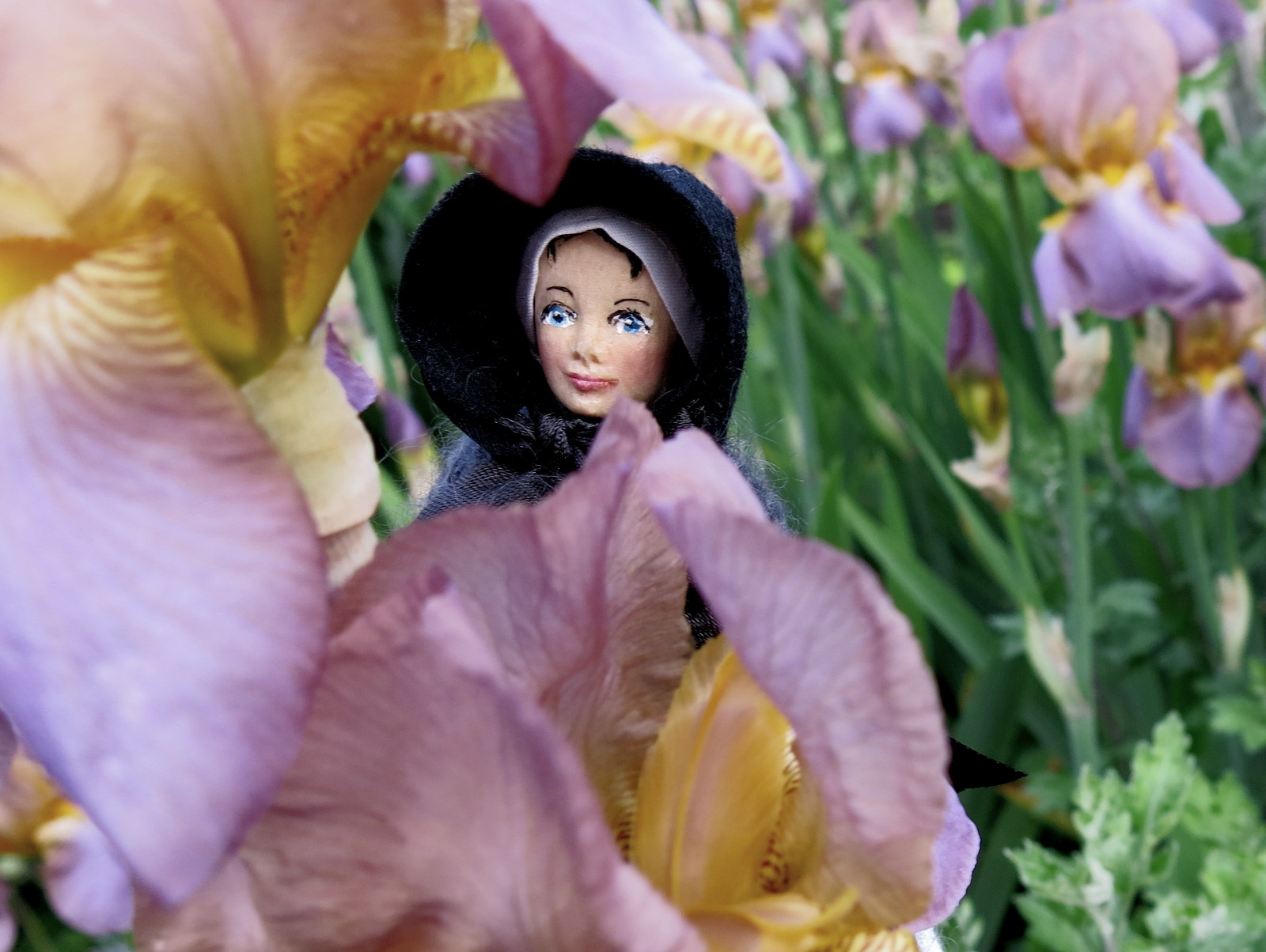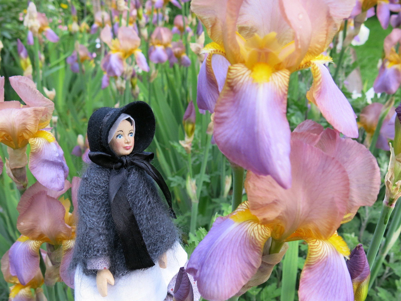 I am hoping to make her an outfit of “Dove-Grey Silk” at some point…I like those Irises too, and Mary Ann was delighted to find some like-minded Friends to spend time with..