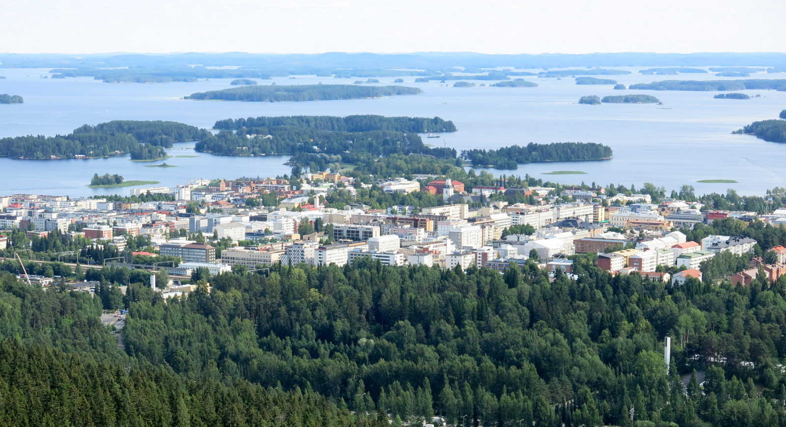 We had a wonderful time in Kuopio, thanks to the geniality and generosity of our hosts.  The view towards the city and the archipelago from the top of the Puijo Tower  was spectacular…This is the lake district – and there are little summer houses along the edges of all the little islands!