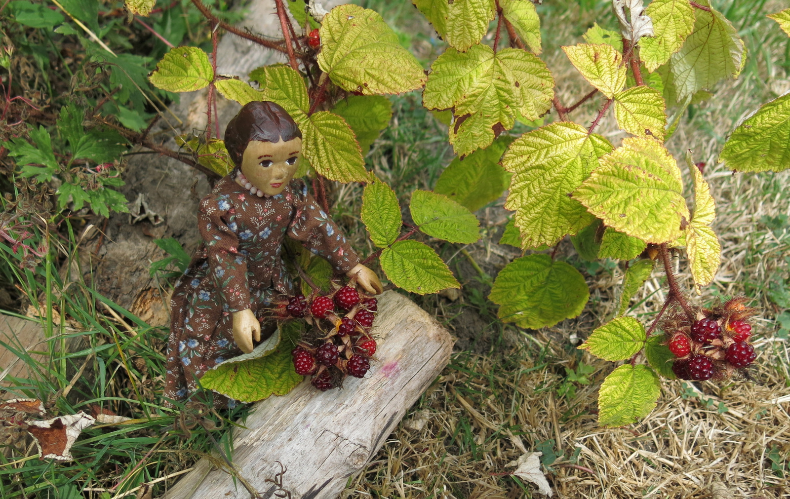 • The berries are a kind of wild raspberry from Japan, they are neither sweet nor tart – a little seedy and more beautiful than delicious if you ask me. Constance likes them, she says they are a civilised size for a Hitty.