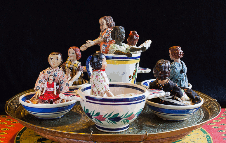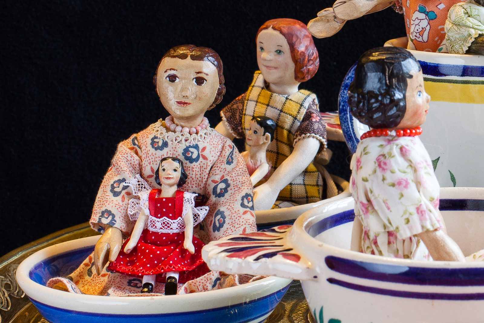 Feeling in need of more celebratory fun, some of the girls set up a carousel using the lazy susan, a brass platter and a selection of Human-sized Quimper ceramics.