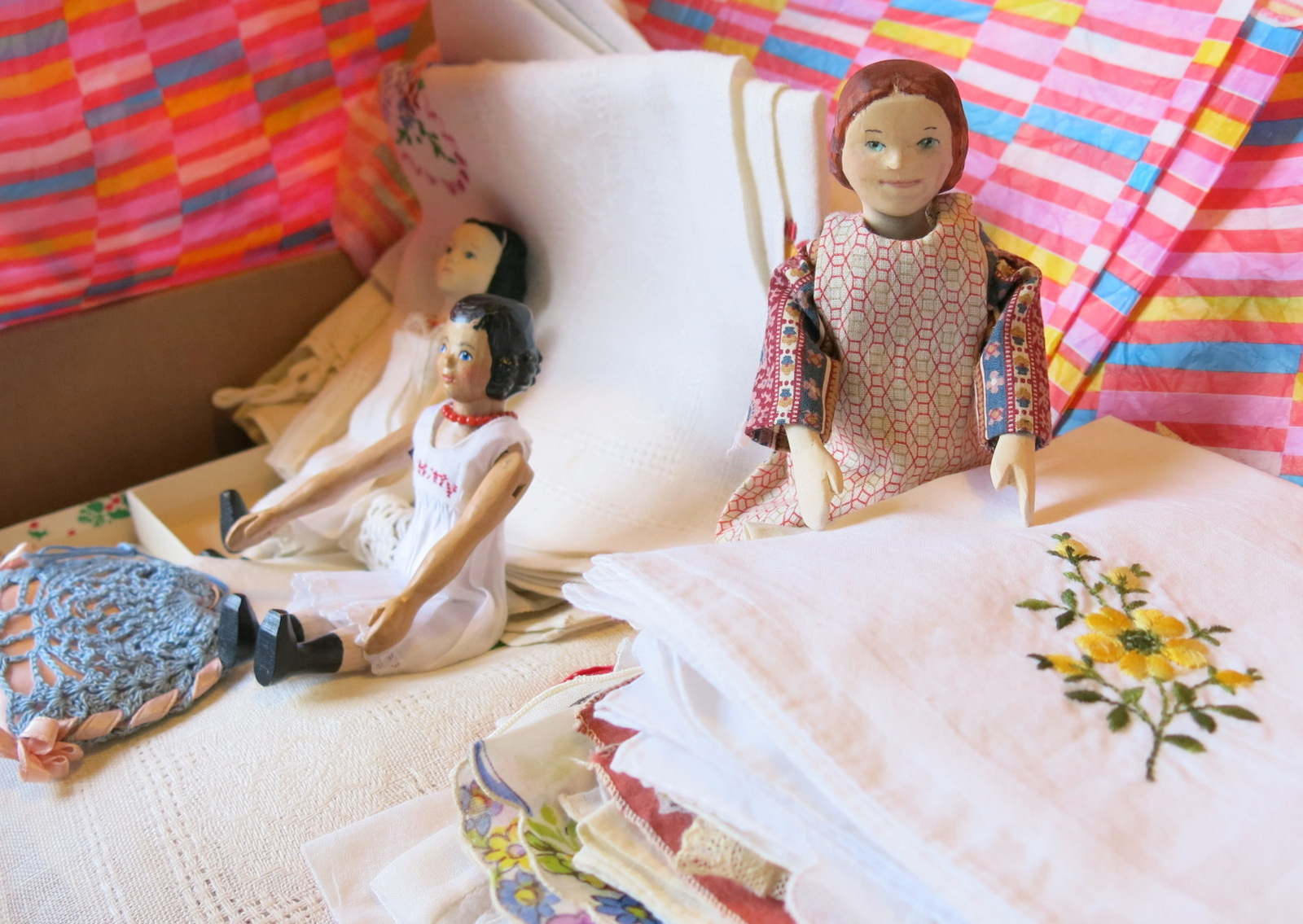 A Hitty friend in Texas was clearing out some family cupboards, and sent a giant box of the resulting textile treasures to the lucky Quimper Hittys…