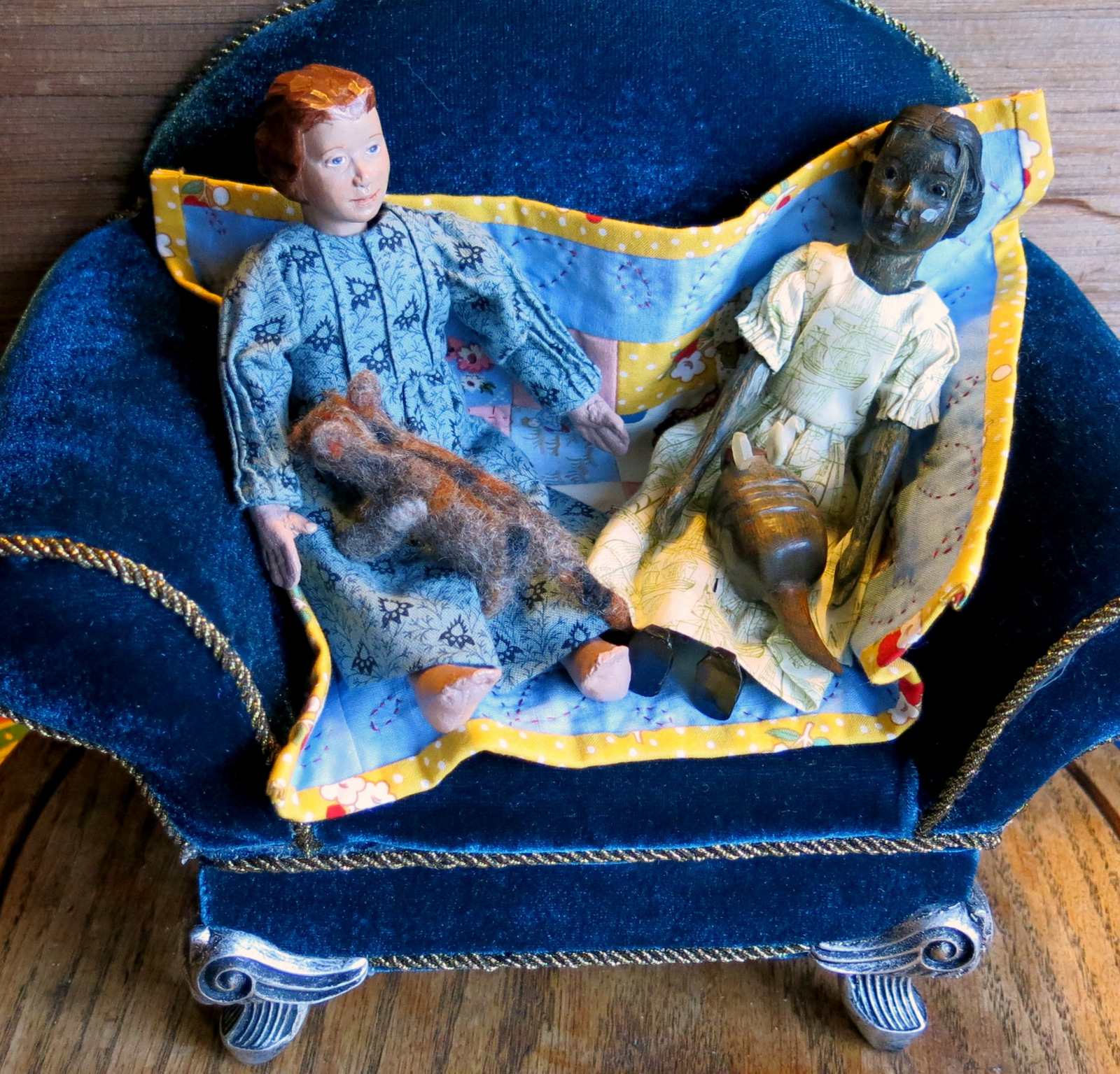 The Quimper Hittys are enduring another November storm. They have discovered that one of the best ways to counteract the gloom is to sit in the comfy Opera Chair, and cuddle their favourite pets.