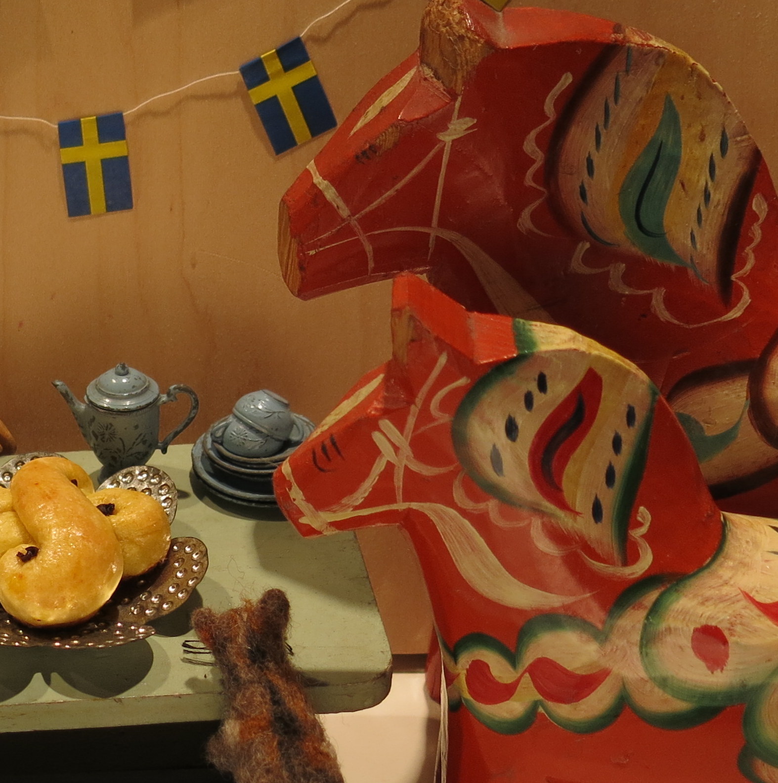 There are many Dalahästar in this household – two of them join the breakfast feast.