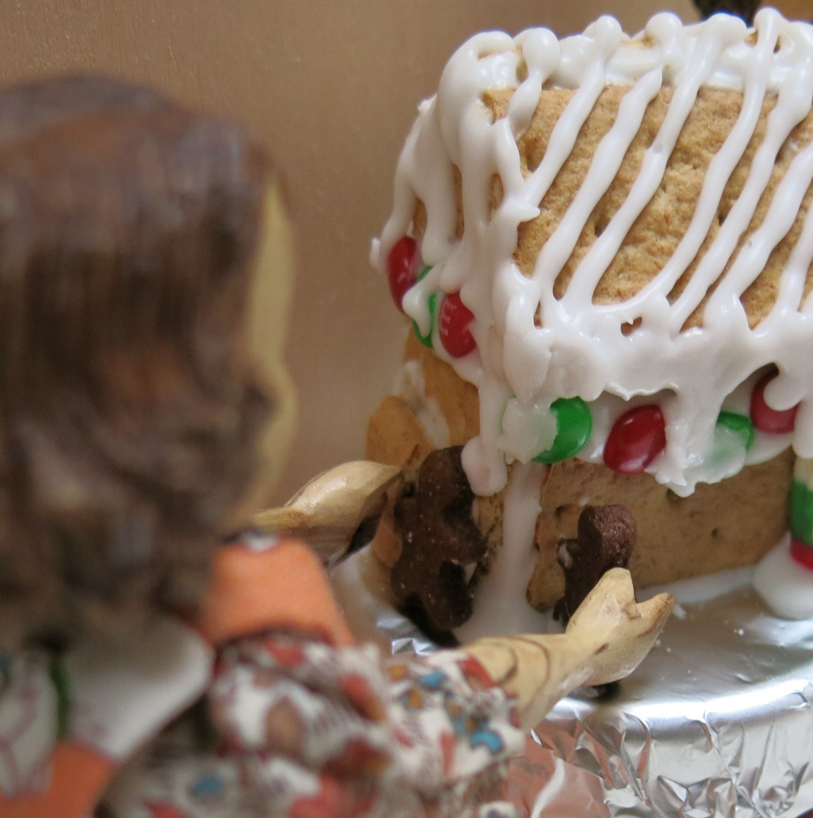 Constance and Eugenia were excited that the Quimper Hitty Human’s kitchen became a gingerbread house construction site this morning…
