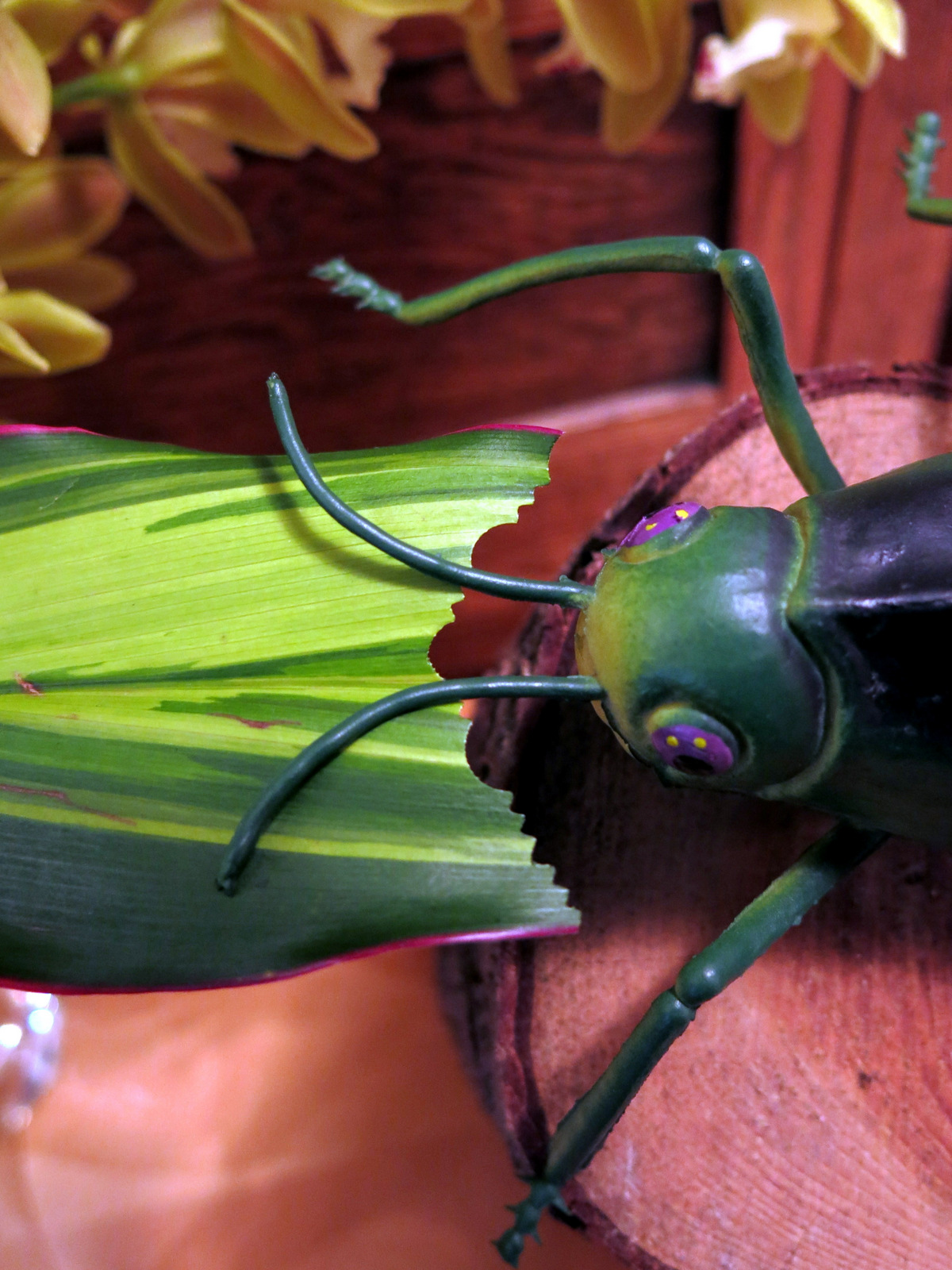 She was surprised, but she is also used to large insects, coming from the wilds of Argentina where grasshoppers really do get almost that big!