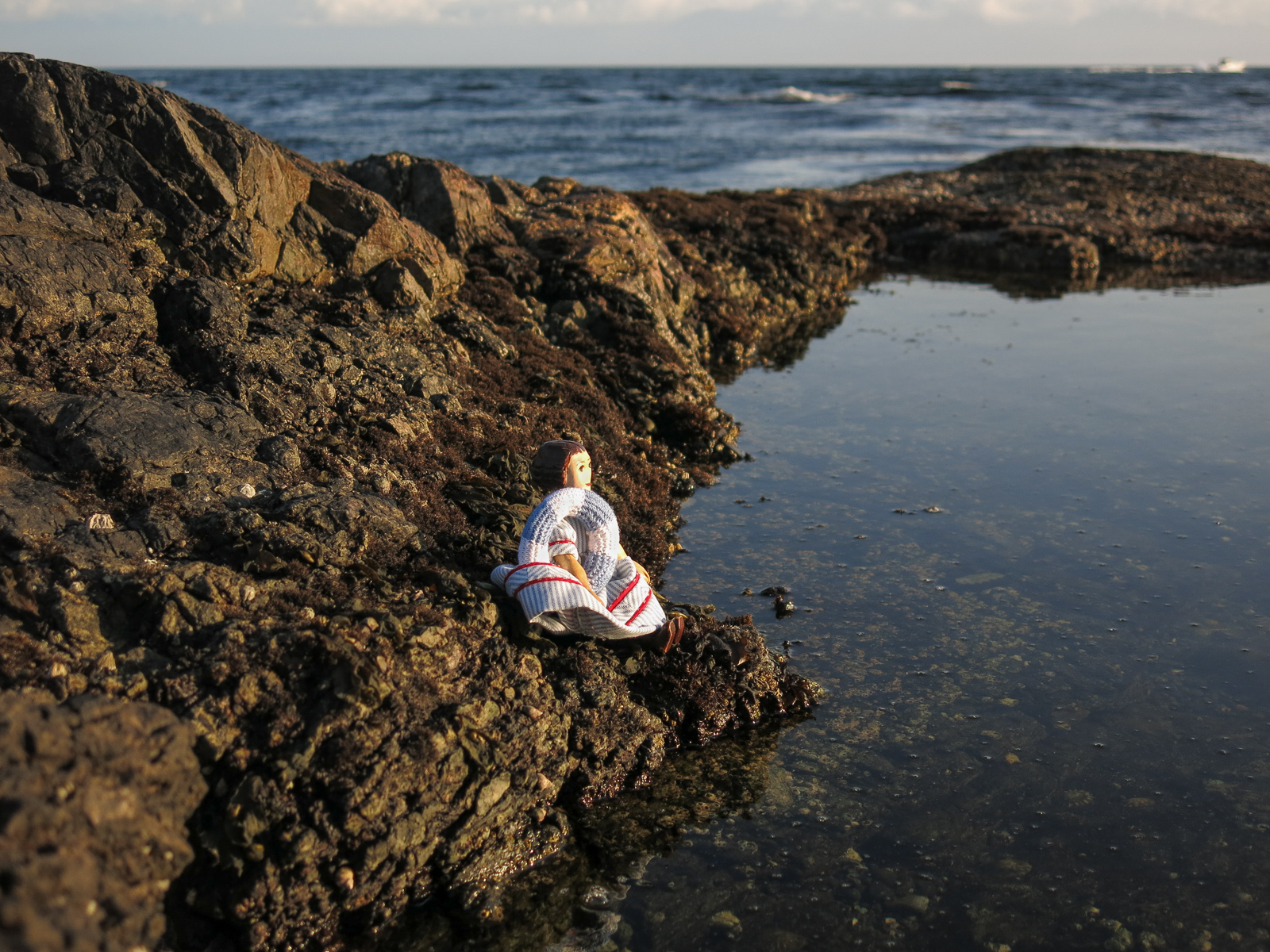We are extremely lucky to live so near the sea! Constance took the life preserver down to the tide pool and contemplated a little evening paddle…