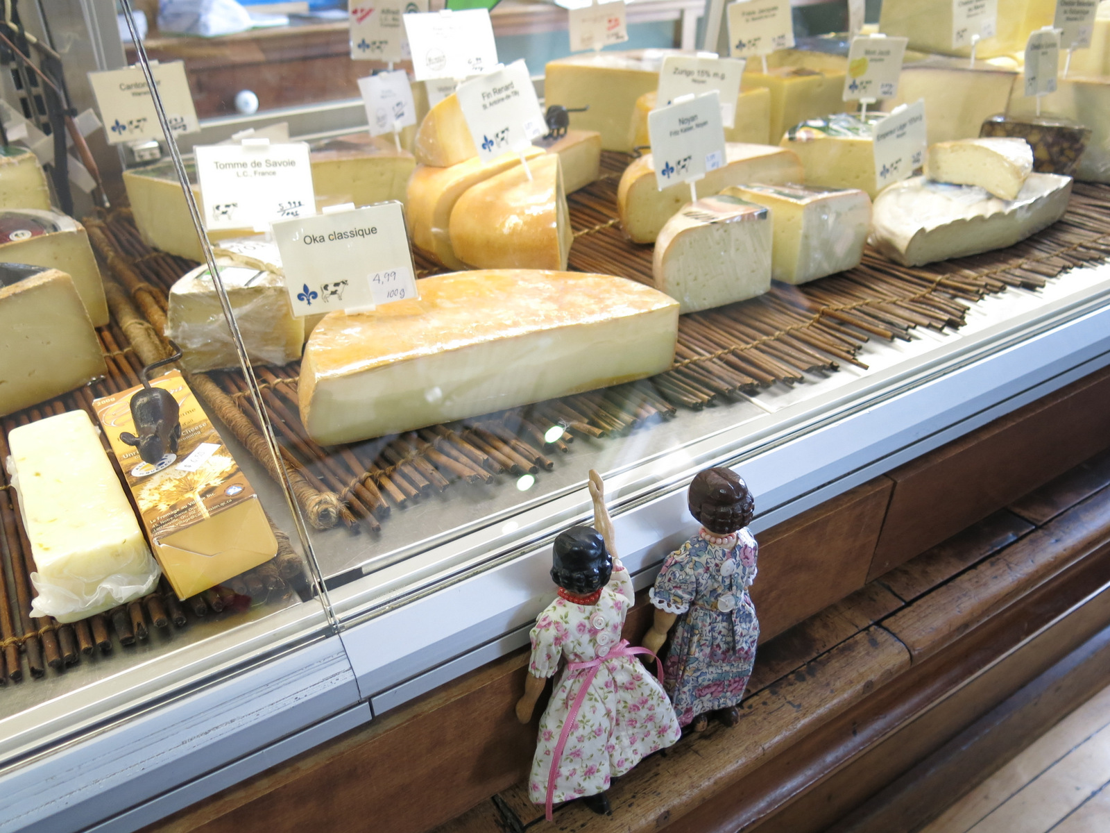 One wall of the shop has a big cooler with a range of delicious cheeses. The mice seem to appreciate the selection!