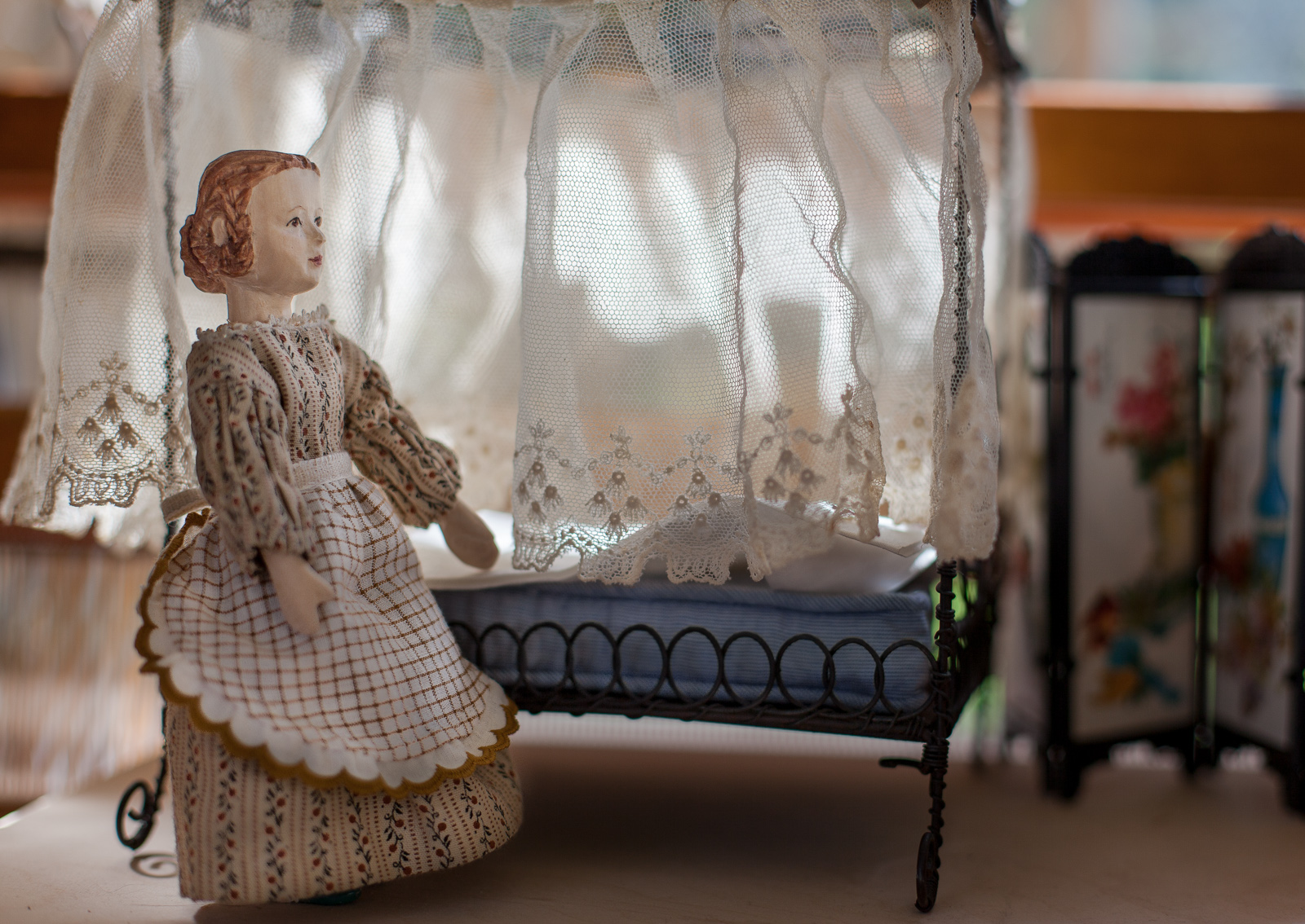 • The bed was the inspiration to do all this sewing…it seemed to require a more elegant style of furnishings than our usual haphazard quilts and blankets.The human house is very ordinary really (if you can call a house full of dolls ordinary!)