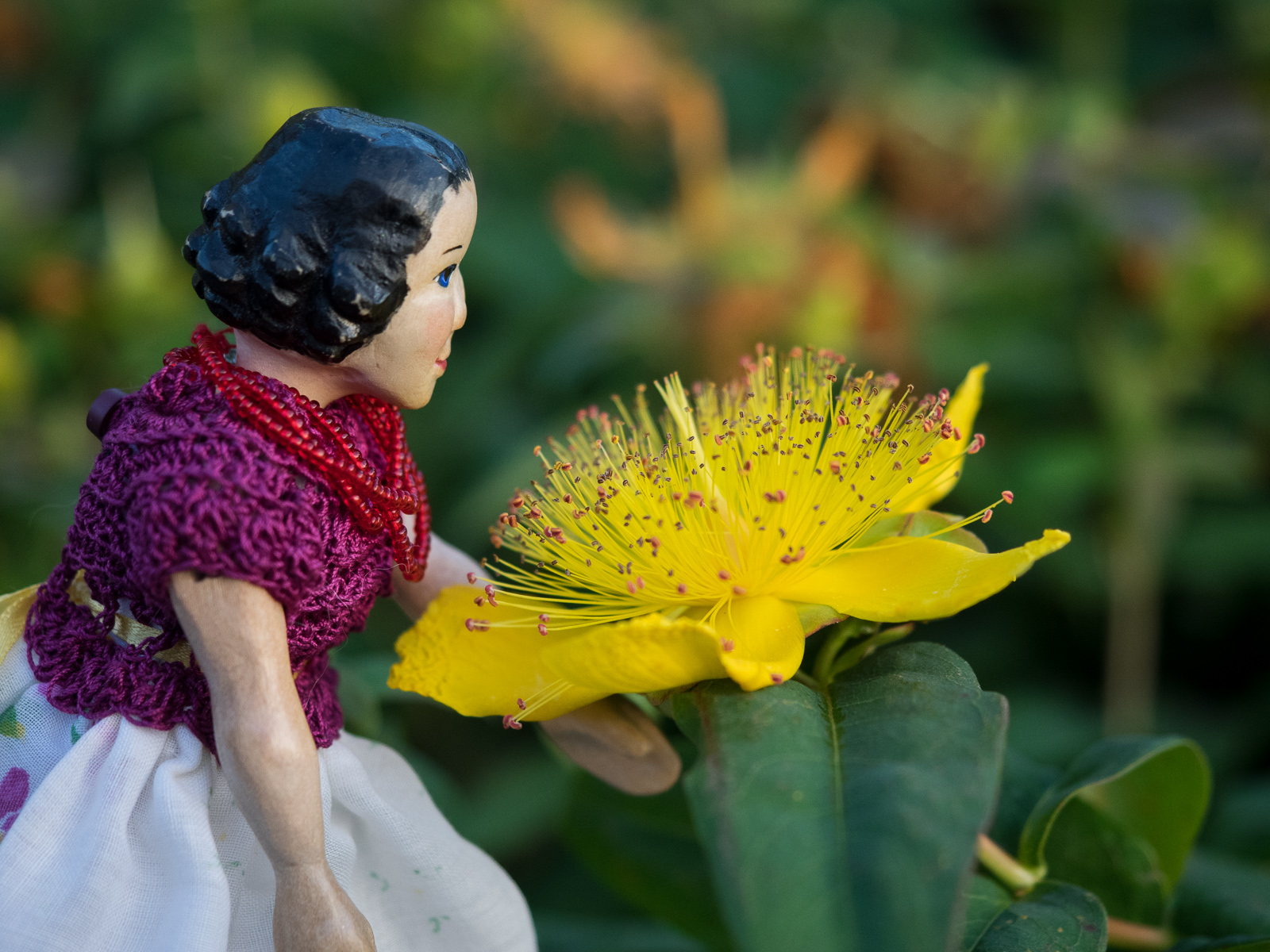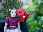 Tansy was reluctant to take off her Ukrainian Easter beads, but very pleased to  model a brand new dress…a Hitty friend created the bodice (out of string!) and sent a hanky to attach as a skirt – the Human was pleased as her previous attempts to crochet have resulted in large snarls and knots….