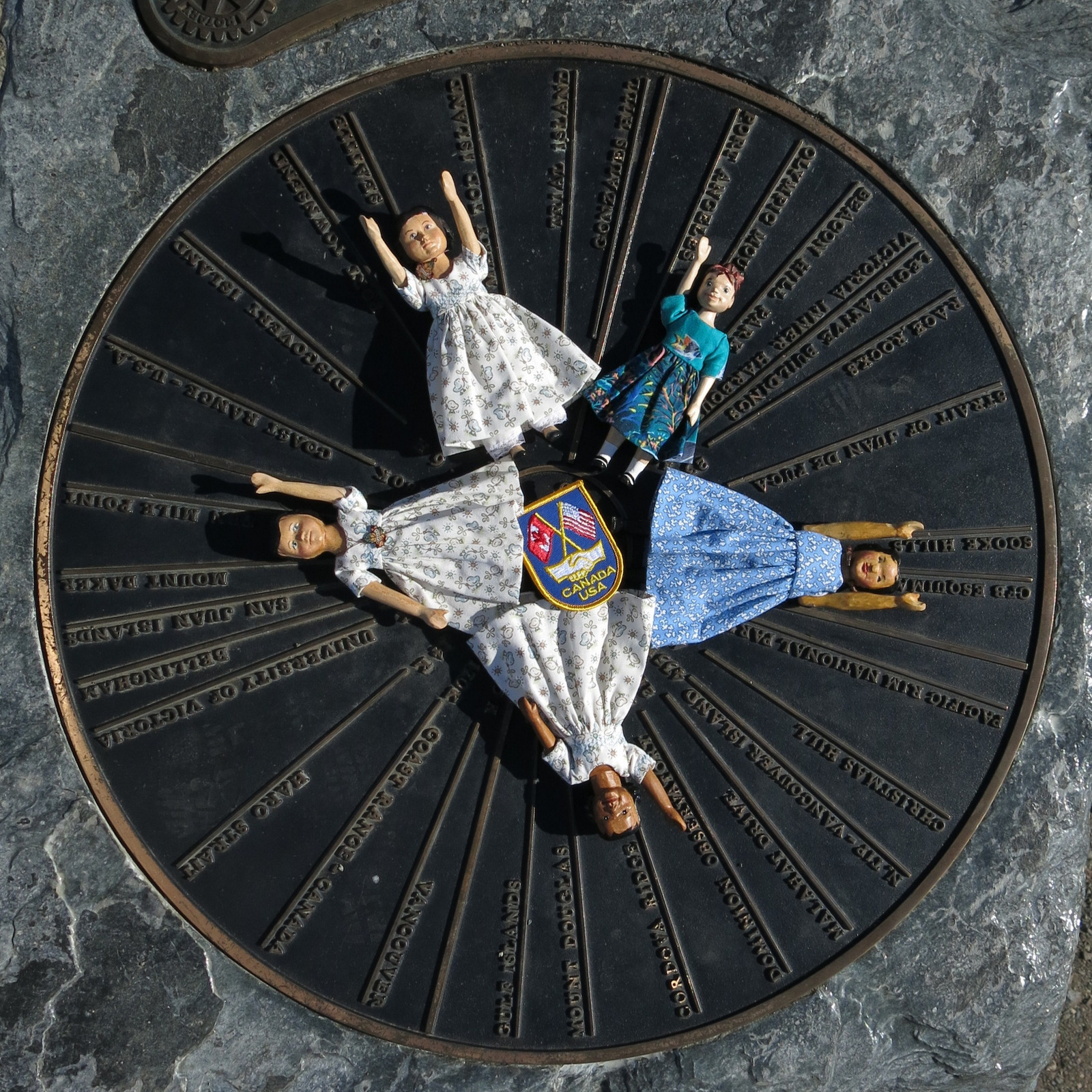 It was a day warmed by sunlight and friendship!  We hardly ever get to meet Hitty friends, and it was lovely to show them around our beautiful city.  In the far distance you can see the Olympic Mountains, and the Strait of Juan de Fuca.  If you wanted to get to the Hitty cupboard, you would follow the straight line on the directional wheel, as the crow flies toward the distant dark green hill on this side of the water, down the other side of the hill, and then stop half a block from the sea.