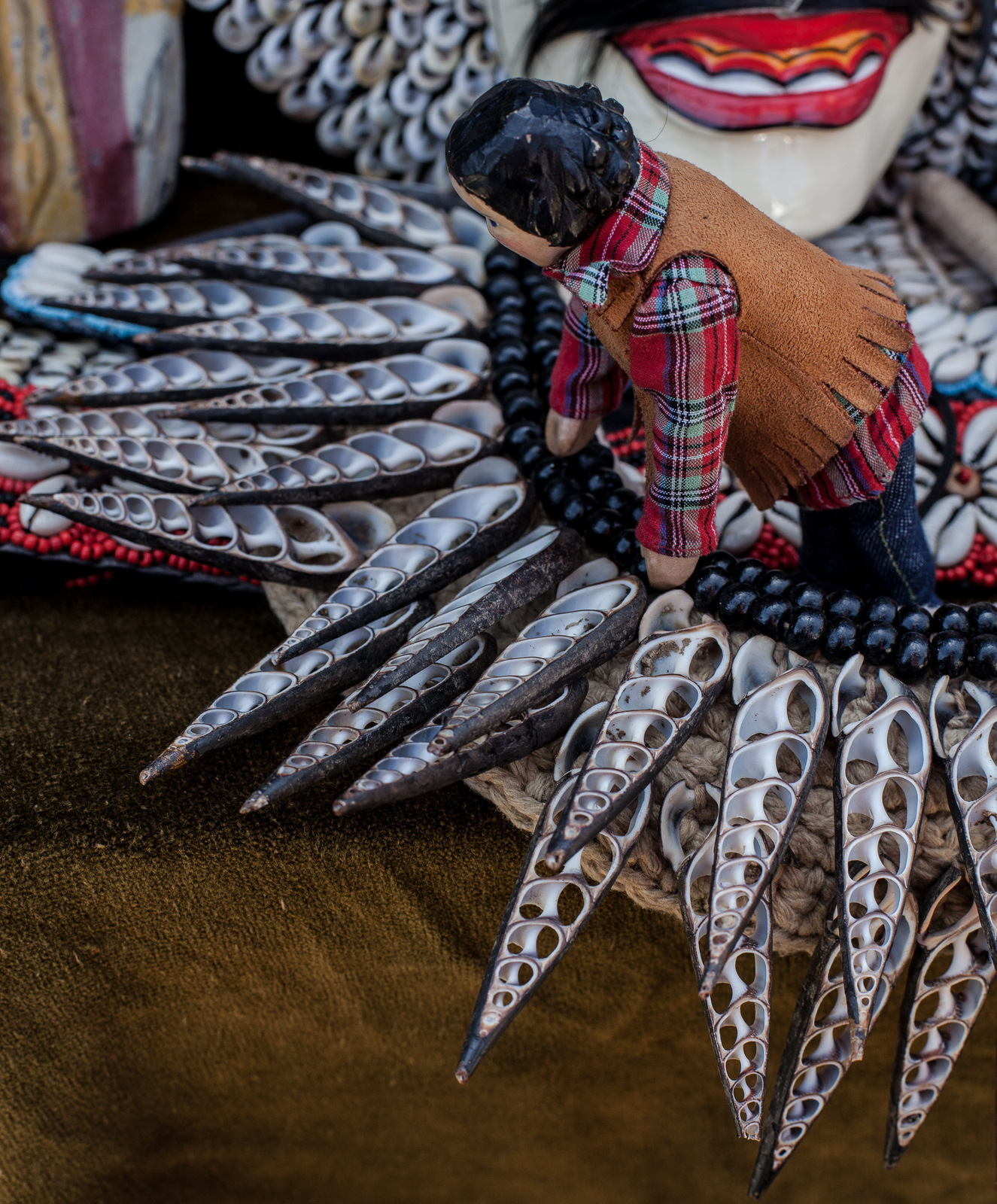 Tansy admired the shells on the Indonesian mask table!