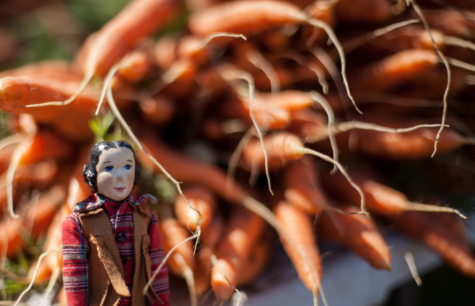Market day! Tansy enjoyed hanging about the farmer’s lovely carrot stacks…