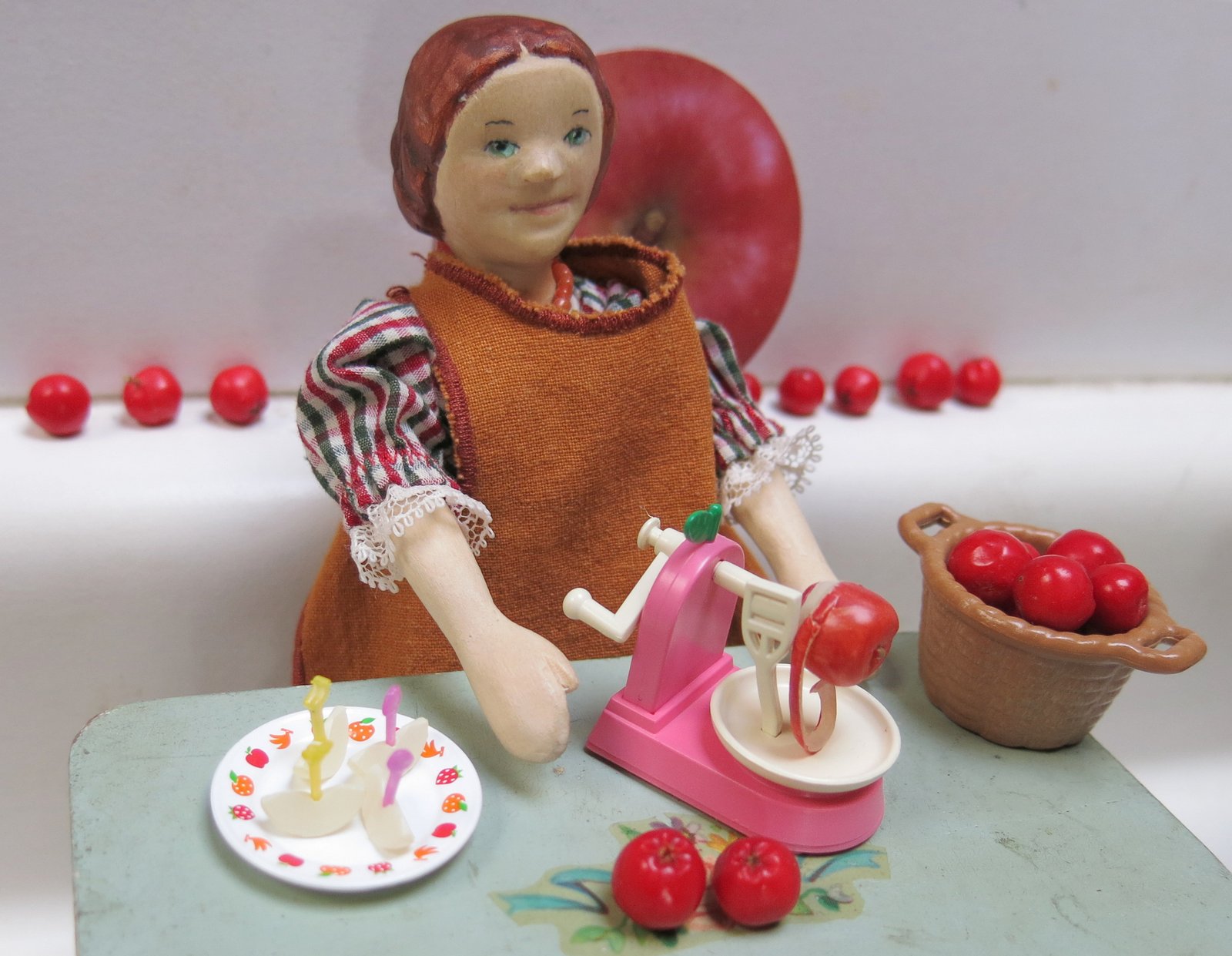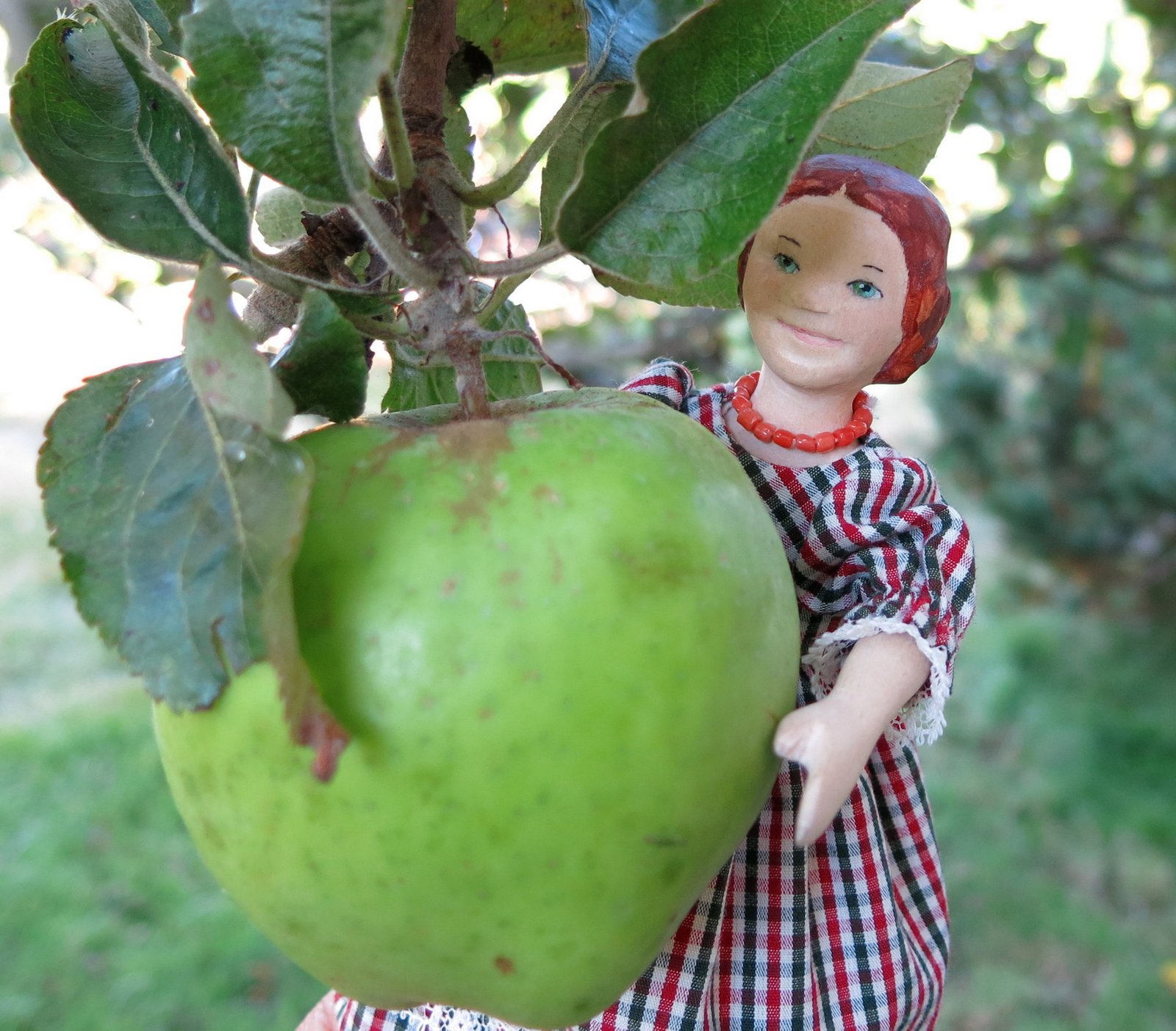 Hattie thought the apple slices looked delicious so she got out the Hitty-sized peeler, corer and slicer… and luckily the Hitty-sized apples were ripe!