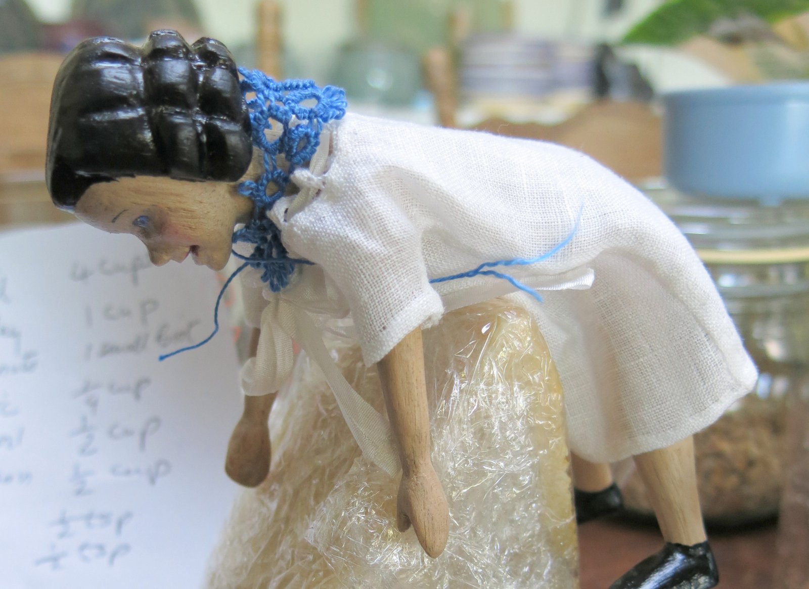 Constance showed her how to prepare the much more manageable Hitty-sized ingredients!