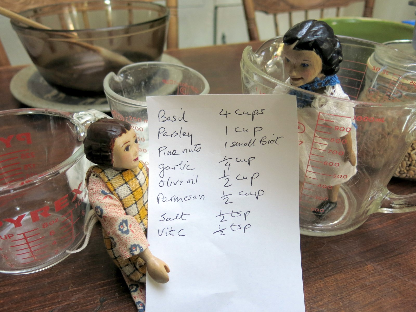 The humans spent hours making 28 bags of pesto for the freezer, and then enjoyed a pasta dinner!!!