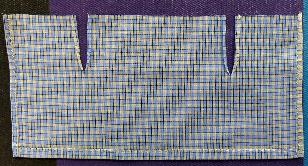 Hem bottom, sides and arm holes by turning over twice and stitching. Ease the bottom of the armhole slash, and make a couple of buttonhole stitches at the very bottom.