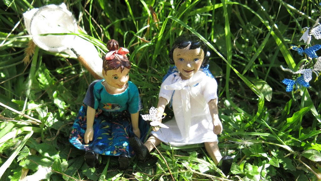 So sweet! In Mo. we call those small blue butterflies (the real ones) Blue Sulphers…they flutter around wet soil in little sweet flocks. Tatty and MIn are very special little girls. And I love those butterflies!!
