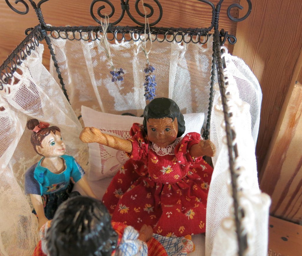 It is indeed a Bed of Glory! The Quimper Hittys are also almost afraid to sleep in it, with the silk duvets, linen sheets and lacy bed-curtains! Such luxury was undreamed of, but it was a gift from a dear Hitty friend in Quebec.