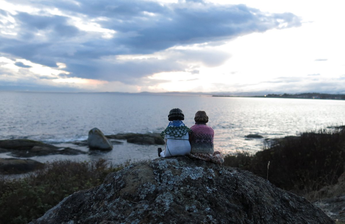 The girls sat together on a lichen-covered rock and watched the clouds change colour.